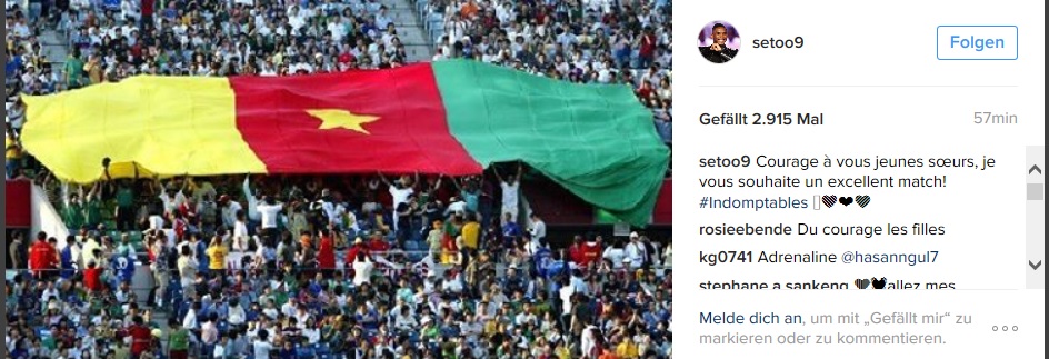 Ils sont nombreux à apporter des messages d’encouragement à leurs sœurs de la sélection nationale qui affrontent les Banyana Banyana d’Afrique du Sud ce mardi, à l’occasion de la deuxième journée dans le groupe A de la Can Cameroun 2016. Comme pour le match d’ouverture, les Lions sont actifs sur les réseaux sociaux. Nguemo, Mandjeck, Zoua, Eto’o fils … chacun à sa manière.