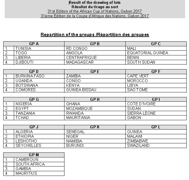 Le tirage au sort de ces éliminatoires a eu lieu ce mercredi 8 avril 2015. Et contrairement aux éditions précédentes, le pays organisateur va lui-aussi prendre part à cette phase qualificative, mais sans que ses résultats influencent sur le groupe dans lequel il se trouve. Or puisqu’il s’agit du Gabon, le pays d’Aubameyang est logé dans le groupe I, aux côtés de la Côte d’Ivoire, de la Sierra Léone et du Soudan. Le Nigéria, vainqueur de la Can 2013 et l’Egypte, les grands absents de la dernière édition en Guinée Equatoriale vont mener les débats dans le groupe G avec la Tanzanie et le Tchad.