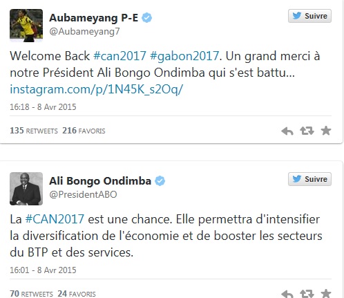 Le Président de la République du Gabon, n’a pas tardé à saluer le résultat du vote à travers son compte Twitter: « Le #Gabon organisera la #CAN2017 ! Merci à la CAF pour sa confiance.Un succès pour le Gabon et un immense bonheur pour la jeunesse africaine ».