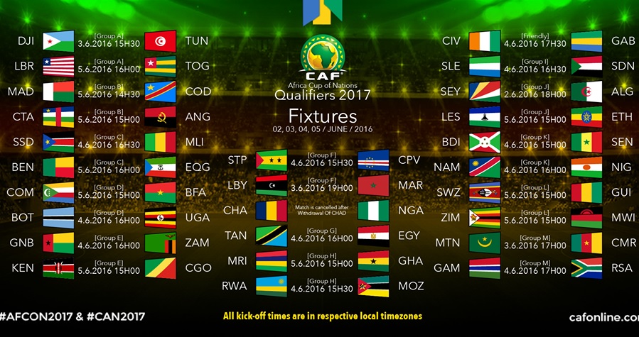 Camfoot vous propose le calendrier des matchs de la Coupe d’Afrique des Nations 2017 qui se déroulera au Gabon du 14 janvier au 5 février.