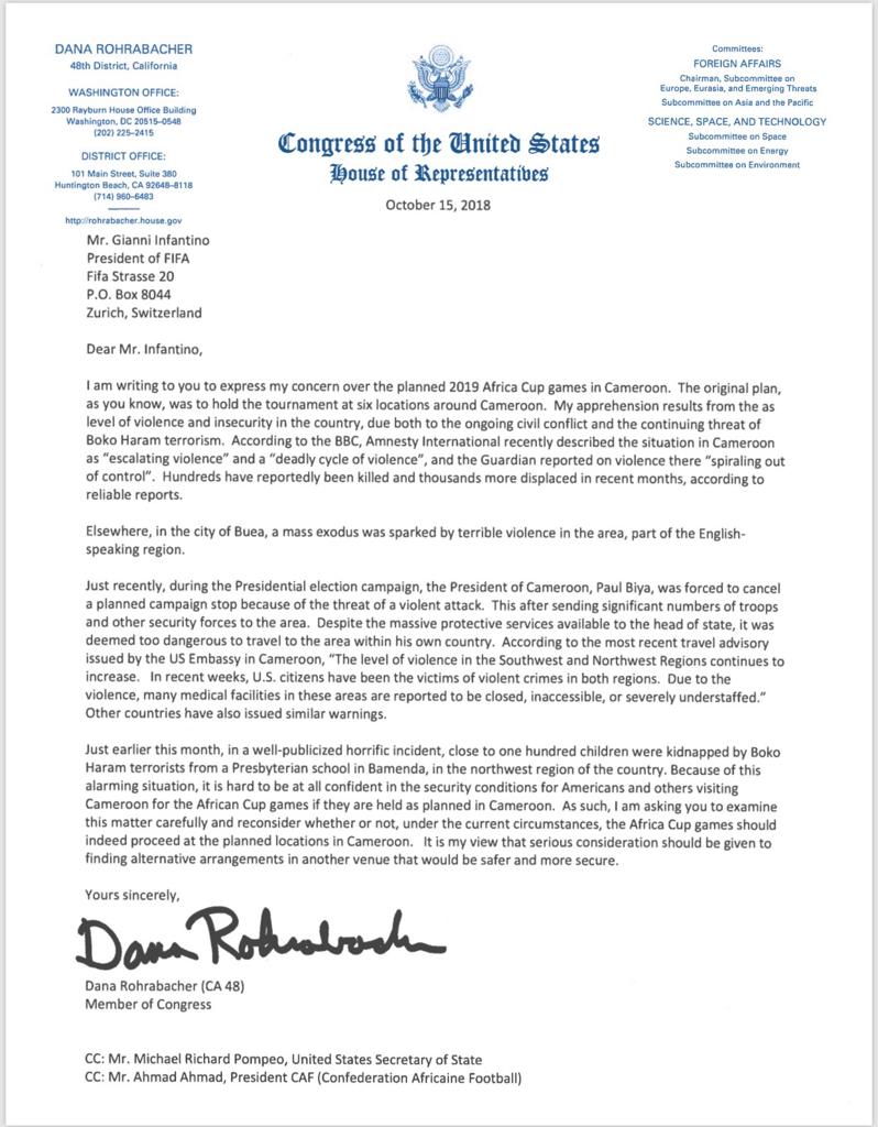 Si l’on est en train de peaufiner la manière avec laquelle on va expliquer le retrait de l’organisation, on est convaincu du côté de la CAF que l’insécurité grandissante autour des régions du Sud-Ouest et du Nord-Ouest va rallier une partie des camerounais à leur décision. Les dernières inspections, et même la dernière, n’auraient pas donné totalement satisfaction. Même si personne n’est inquiet que les stades soient prêts à temps, on penche vers les infrastructures autres que sportives pour justifier le forfait. Les voiries, les autoroutes, la qualité des aéroports, les infrastructures sanitaires, dit-on, n’ont pas été rehaussé au niveau attendu. Il y a aussi une grosse mobilisation à l’international contre l’organisation au Cameroun de cette compétition par des activistes membres du groupe séparatiste de l’Ambazonie qui a réussi à capter l’attention de certains députés fédéraux américains. La plus vocale d’entre elle est Dana Rohrabacher qui a émis une correspondance à l’intention du Président de la FIFA pour qu’il s’assure que cette compétition se tiendra ailleurs qu’au Cameroun. La délégation camerounaise, qui est arrivée ce jeudi à Accra, est extrêmement tendue et selon certains médias, elle a refusé de se compromettre dans des interviews alors que les marocains, tout sourire, attendent avec impatience la décision que rendra Ahmad Ahmad. Le président de la CAF se retrouve ainsi empêtré dans ses propres contradictions puisqu’il avait annoncé que c’est au Cameroun d’annoncer s’il pouvait ou non organiser de manière idoine la compétition et obtenir le droit de se refaire dans deux ans. Au lieu de cela, il va devoir se dédire et trancher et les implications juridiques peuvent être majeures contre la Confédération Africaine.