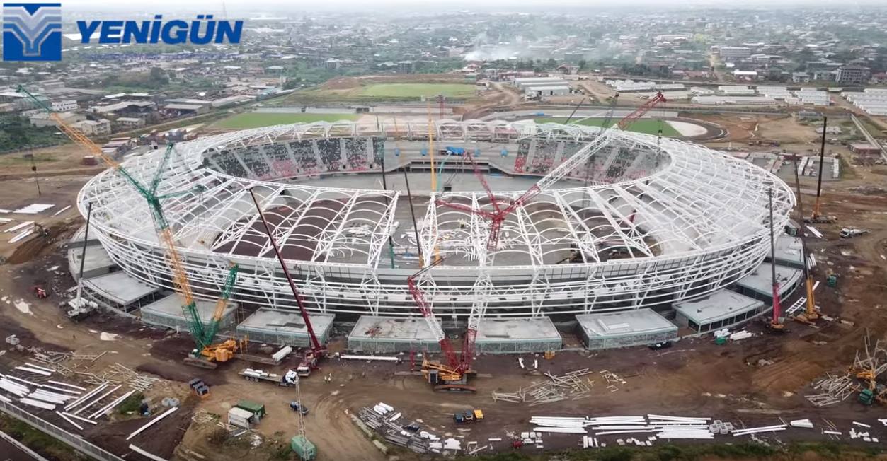 Douala aura un joyau architectural une fois le stade de Japoma aura fini son embellie. À ce stade des travaux, le quartier a pris une envergure de grand lieu. Si les travaux de pose de la structure de la toiture sont à toutes fins utiles terminés, la carcasse propose dores et déjà un avant goût de ce que sera cette infrastructure. Une image valant mille mot, voici le Stade Japoma en date du 15 novembre 2018.