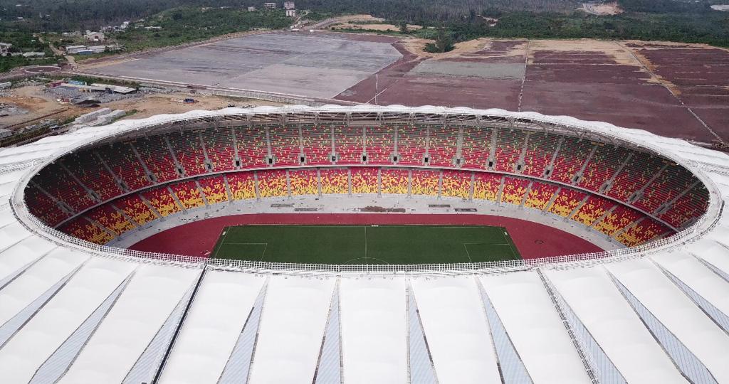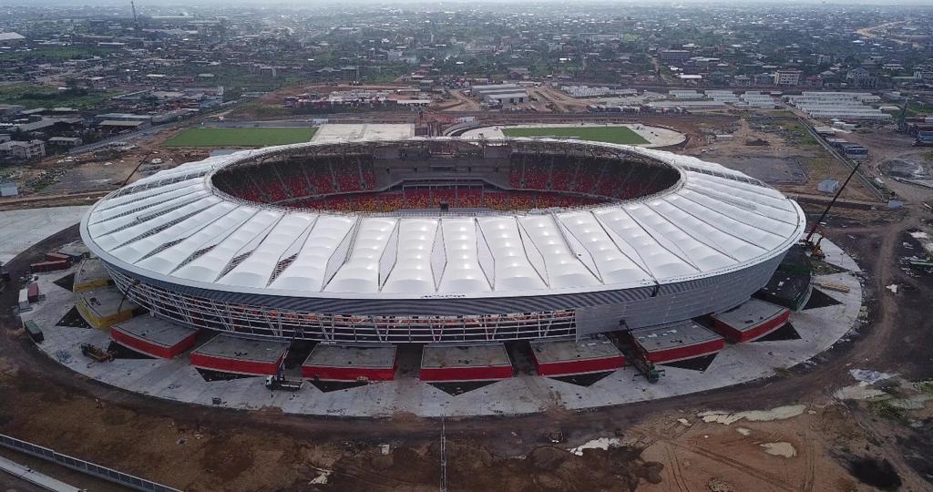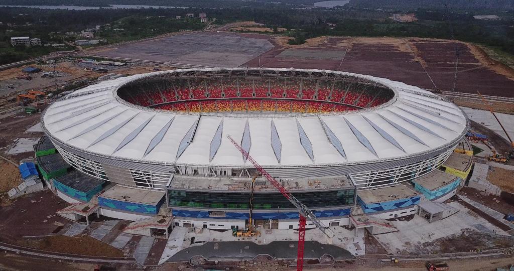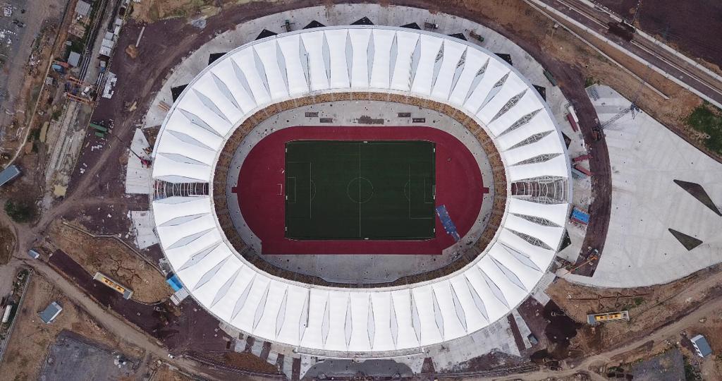 Si le stade qui sera baptisé du nom du Président de la République du Cameroun a pratiquement arrêté ses opérations depuis de nombreuses semaines, le Stade Japoma de Douala est à l’étape des finitions pour son infrastructure principale. L’immeuble se dresse, majestueux, et transforme le décor dans cette partie de la ville en un tout architectural. Les annexes aussi se lèvent progressivement et à terme, leur juxtaposition sera une musique visuelle intemporelle. En images…