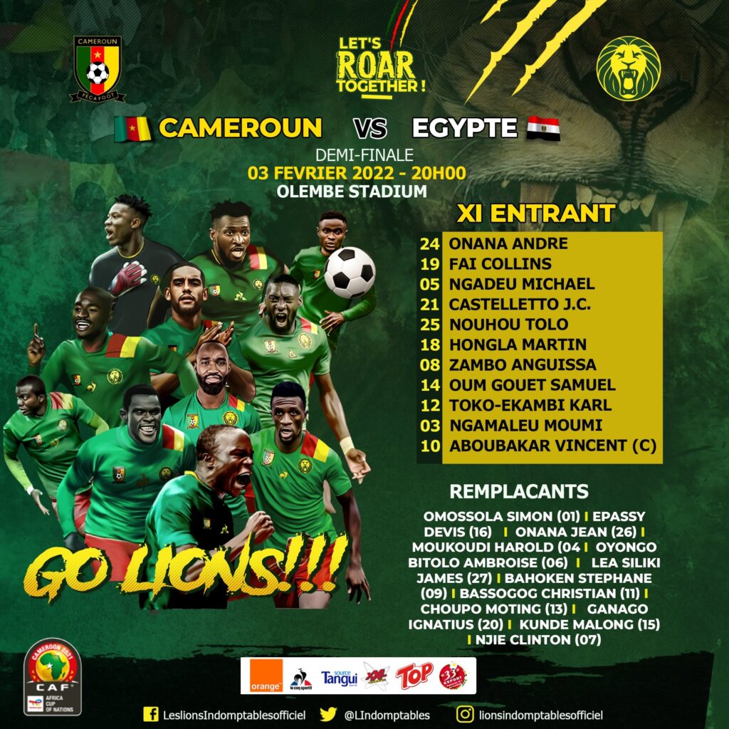 Dans les buts, l’excellent André Onana aura devant lui en défense Nouhou Tolo, Castelletto, Ngadeu, et Fai Collins.