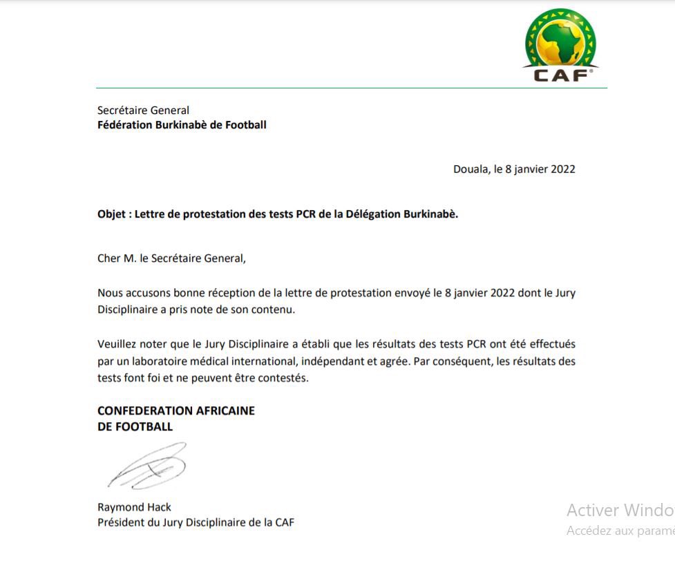 Bertrand Traoré et un des coachs de la sélection du Burkina Faso ont accusé à mots non couverts samedi le Cameroun d’avoir quelque chose à voir avec les résultats des tests COVID-19 qui va forcer plusieurs joueurs et staffs à s’absenter pour le premier match de la CAN 2021. Et justement, ces deux pays se feront face ce dimanche. Dans sa réponse au Burkina Faso, le Président du Jury Disciplinaire de la CAF s’est voulu tranchant.