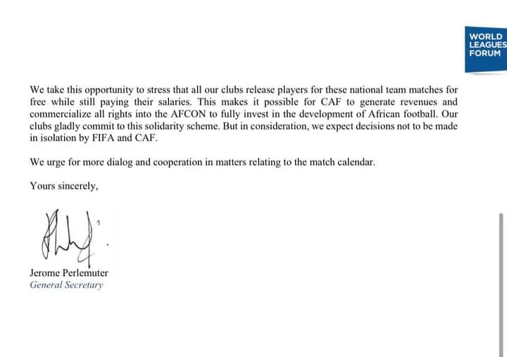 Tel que l’exprime cette association, « ces décisions, prises unilatéralement par la FIFA et la CAF, a un énorme impact sur l’intégrité des ligues domestiques et placent plusieurs clubs et joueurs dans des positions difficiles ».