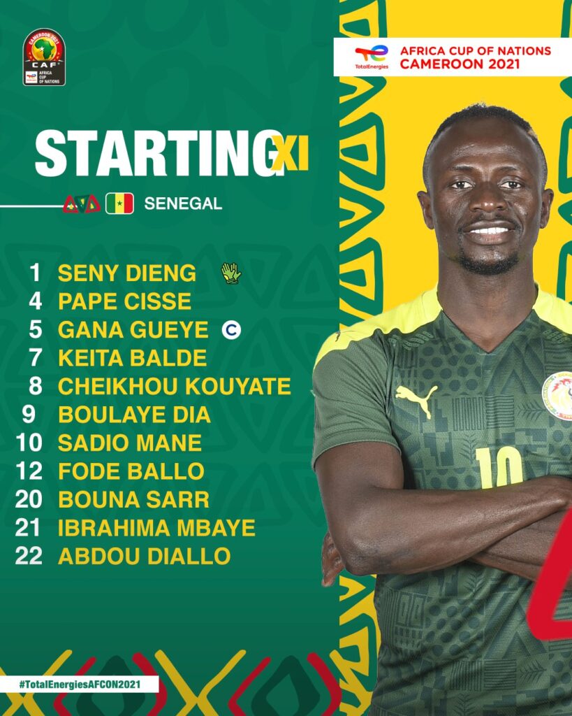 Les Lions de la Téranga vont aligner un 4-2-3-1. En l’absence de Edouard Mendy dans les buts, c’est bien Seny Dieng qui va garder les buts. En défense, le quatuor Ibrahima Mbaye, Pape Abou Cissé, Abdou Diallo et Fodé Ballo-Touré vont tenir le for. Le double pivot sera assuré par Cheikhou Kouyaté et Idrissa Gueye. Au milieu offensif, ce sera le trio Bouna Sarr, Sadio Mané et Keita Baldé. En pointe, Boulaye Dia va assurer le balayage.