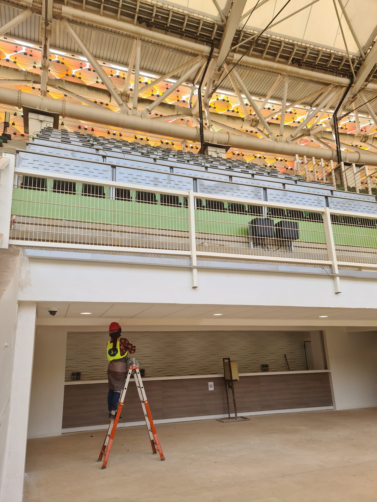 Le Stade d’Olembé avance. C’est le constat que l’on peut faire ce mardi. On peut effectivement dire, pour les espaces intérieures, qu’on est en plein dans les finitions et les retouches. DU côté des aménagements extérieurs, les travaux avancent puisque les images indiquent une avancée intéressante. Il est évident que si l’on avait travaillé sur ce chantier autant de zèle que lors des deux dernières semaines, il y aurait eu moins de débat.