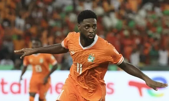 Jean Philippe Krasso of Cote dIvoire celebrates goal during the 2023 Africa Cup of Nations Final match between Cote dIvoire and Guinea Bissau at the Alassane Ouattara Stadium in Abidjan, Cote dIvoire - Photo by Icon Sport