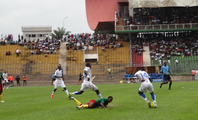 On joue la 27e minute de la rencontre entre le Cameroun et le Gabon ce dimanche au stade Omnisports de Yaoundé. Jacques Haman, attaquant camerounais a le ballon au pied. L’attaquant de Cotonsport de Garoua tente une percée dans la surface de réparation gabonaise. Il est fauché à son passage par deux défenseurs gabonais.