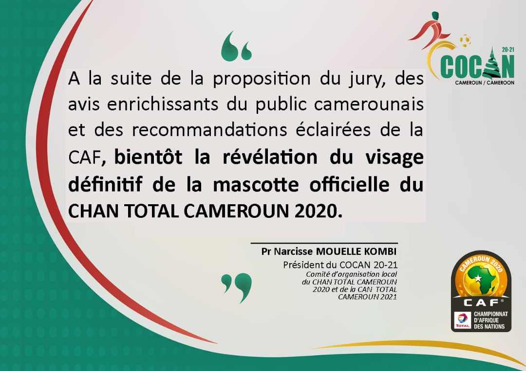 Kombi Mouelle a donc décidé de revoir la copie et de redévoiler une nouvelle mascotte du CHAN 2020 : « A la suite de la proposition du jury, des avis enrichissants du public camerounais et des recommandations éclairées de la CAF, bientôt la révélation du visage définitif de la mascotte officielle du CHAN Total Cameroun 2020 », a ainsi indiqué Pr Narcisse Mouelle Kombi.