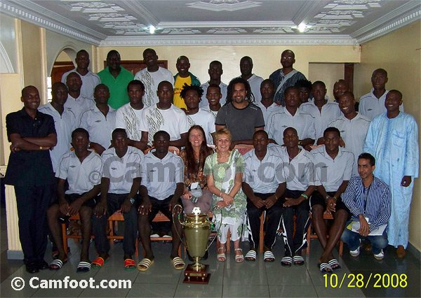 C’est auréolé du trophée de vainqueur de la coupe du Cameroun édition 2008 que Cotonsport de Garoua le plénipotentiaire du Cameroun s’apprête à effectuer le déplacement du Caire où l’attend ce dimanche, le Al Ahly en match comptant pour la finale aller de la Champions League africaine. Ce lundi matin, l’entraîneur Alain Ouombleon Guedou et ses joueurs ont reçu la visite de Christian Karembeu, ancien international français, vainqueur de la coupe du monde 1998. L’ancien joueur du Real de Madrid est arrivé au Cameroun hier à l’invitation de l’association culture Foot Solidaire qui organise dans notre pays la 2eme conférence internationale du jeune footballeur africain sur le thème » Football, migrations et protection des mineurs « . Christian Karembeu qui a été le coéquipier de Alain Serge Ouombleon au FC Nantes en France a saisi l’occasion de sa venue au Cameroun pour soutenir son ancien coéquipier qui officie depuis près de trois mois comme entraîneur-manager du club champion du Cameroun en titre.