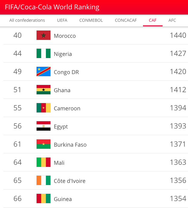 Suite à ses deux défaites contre le Maroc et contre le Brésil, la sélection nationale du Cameroun a perdu quatre rang de l’échelon FIFA pour ne se situer désormais qu’au 55e rang mondial. Il faut dire qu’au contraire du pays des Lions Indomptables, le Maroc, qui a battu pour la première fois le Cameroun, a fait son entrée dans le trio de tête africain. Les Lions de l’Atlas ont gagné sept positions et figurent désormais à la 40e place mondiale.