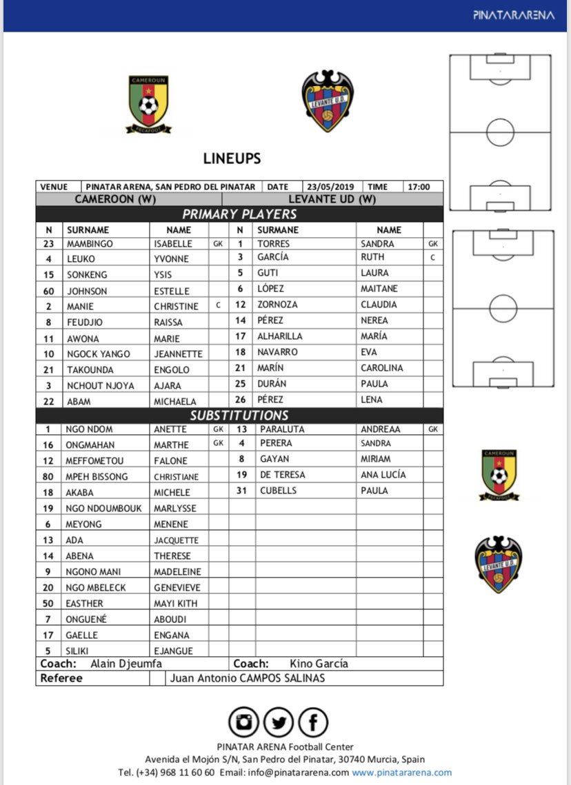 Les Lionnes ont inscrit deux buts à chaque mi-temps. C’est NCHOUT ADJARA, bien en forme, qui ouvre le score à la 8e minute. Puis à la 25eme minute, MICHAELA ABAM double la mise. Raïssa Feudjio fera de même à la 63eme et une minute après, AKABA MICHELLE clôturera le score.