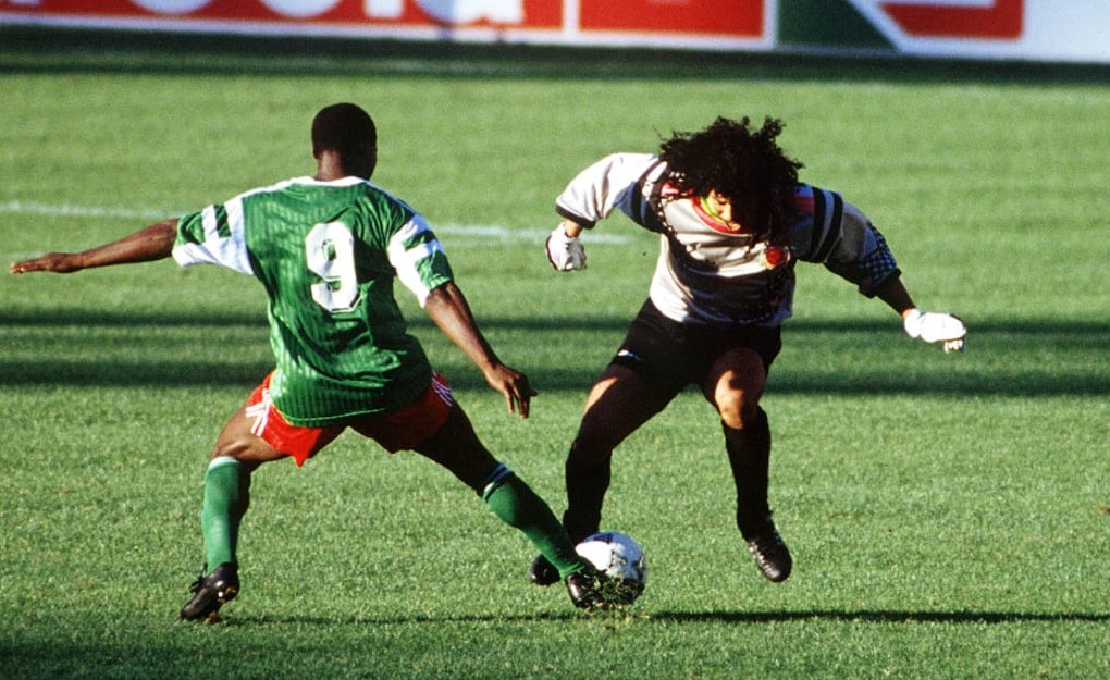 Milla a été l’un des héros d’Italie 1990. Il confirmera quatre ans plus tard aux États-Unis en battant son propre record du buteur le plus âgé de toute l’histoire de la Coupe du Monde. Mais c’est bien en Italie que l’ancien joueur de Bastia, Saint-Étienne et Montpellier établira sa légende, grâce notamment à une bourde colossale d’un autre monument du football mondial, venu de Colombie.