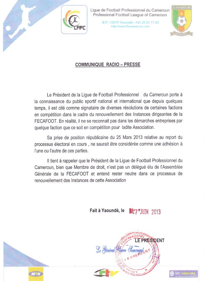 Le général Semengue est remonté contre l’utilisation abusive de son nom dans la crise actuelle qui secoue la fédération camerounaise de football. Il l’a d’ailleurs signifié ce jour par communiqué officiel.