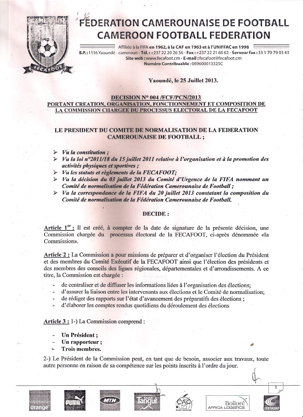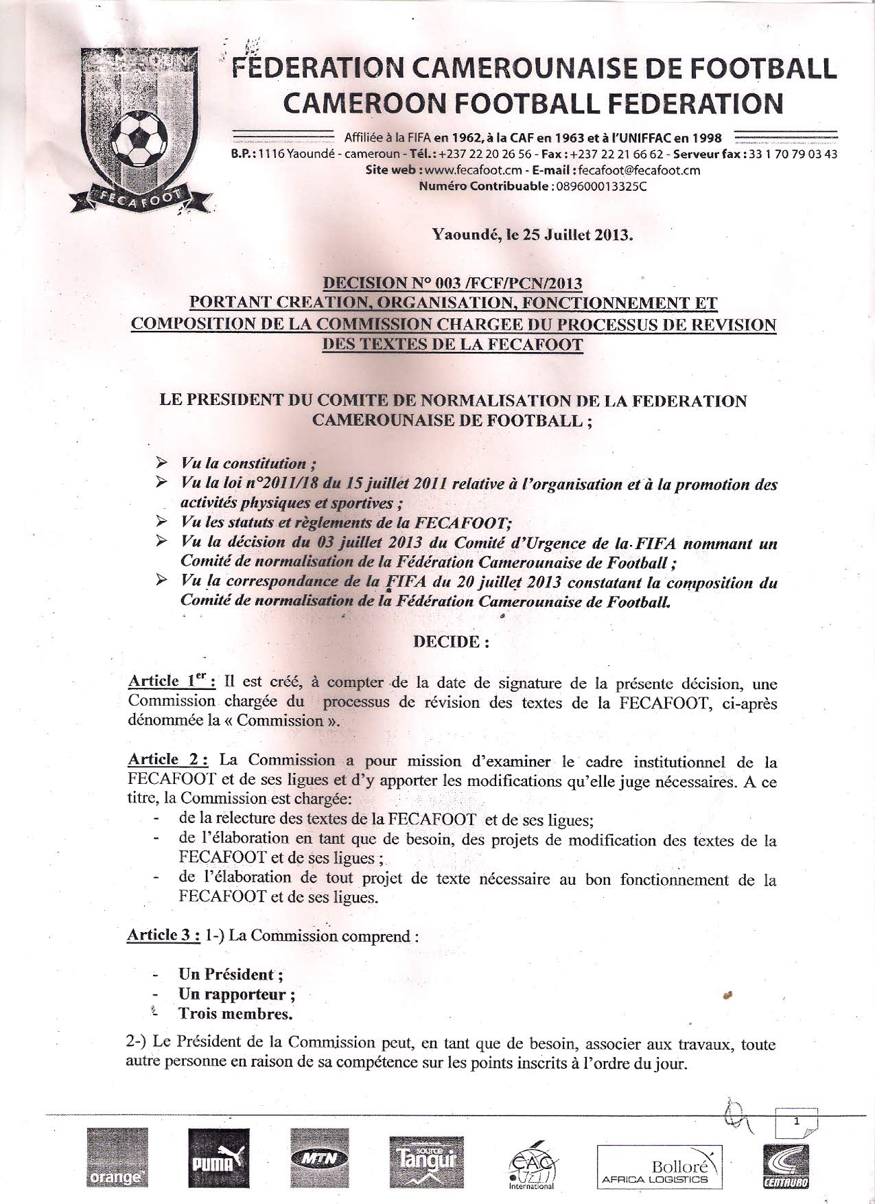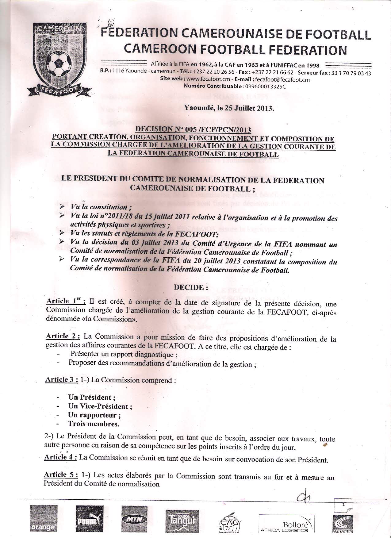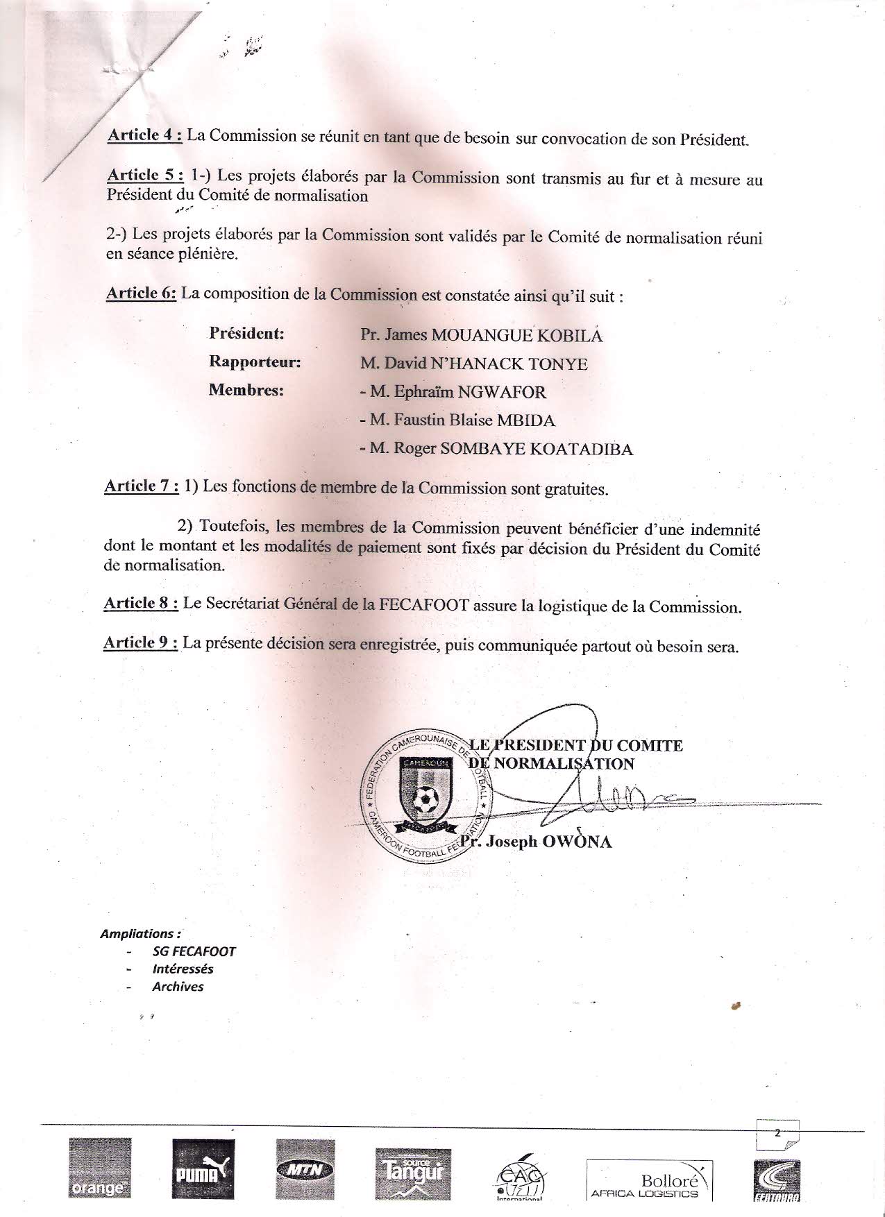 Ça va vite au comité de normalisation. Trois textes ont été signé ce vendredi par le Professeur Joseph Owona, mettant les bases des commissions de la gestion quotidienne de la fédération, de la révision des textes, et du processus électoral.