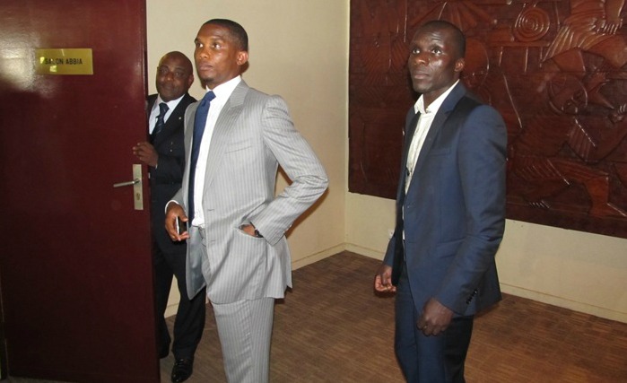 Samuel Eto’o est entré dans la salle avec son avocat Me Gabriel Parfait Kaldjob qui, pour la circonstance, défendait Enoh Eyong Tarkang. Le capitaine des Lions a aussi demandé et obtenu que Benoit Angbwa, son coéquipier de l’Anzhi Makhalachka, rentre dans la salle comme faisant partie de sa défense.