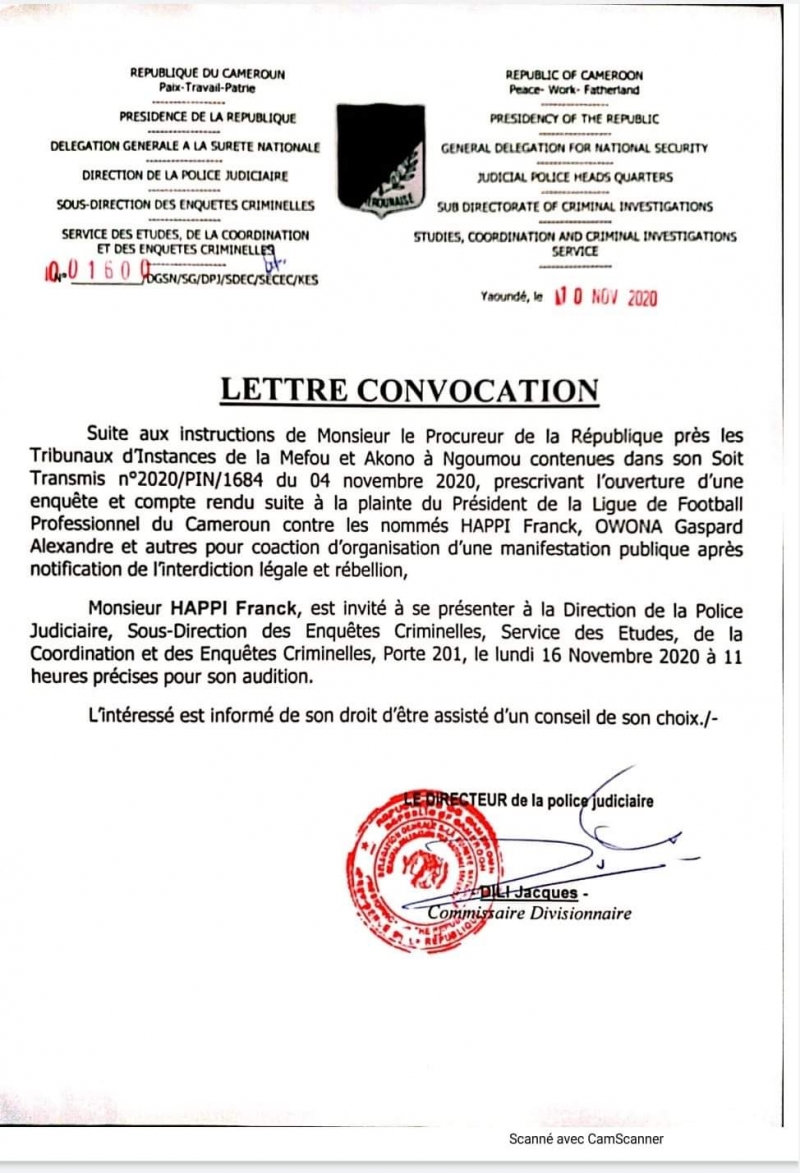 L’ancien Président du Conseil d’Administration de Union Sportive de Douala est dans de beaux draps. Suite à la réunion organisée au Centre d’Excellence de la CAF à Mbankomo, le président du Syndicat des Clubs d’Élite du Cameroun a reçu une convocation à comparaître suite à une plainte du Président de la Ligue de Football Professionnel. C’est que malgré le fait que cette réunion ait été interdite par l’autorité territoriale, des présidents de club se sont réunis à date et heure pour tenir une assemblée.