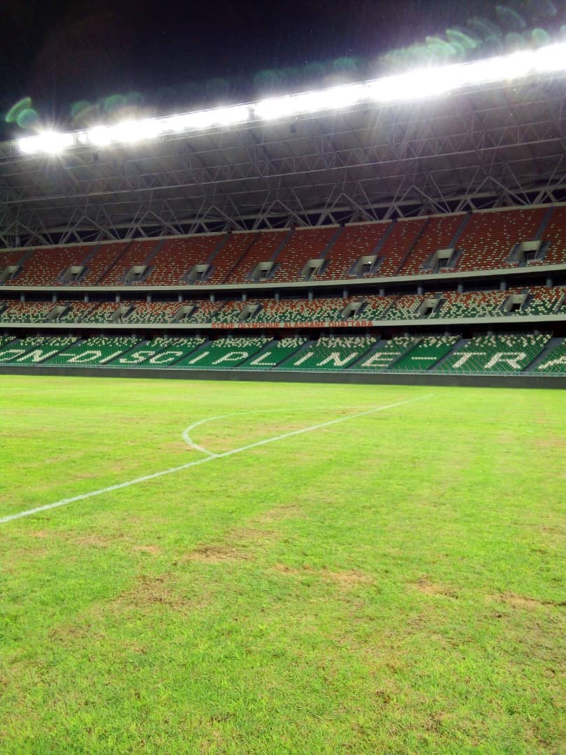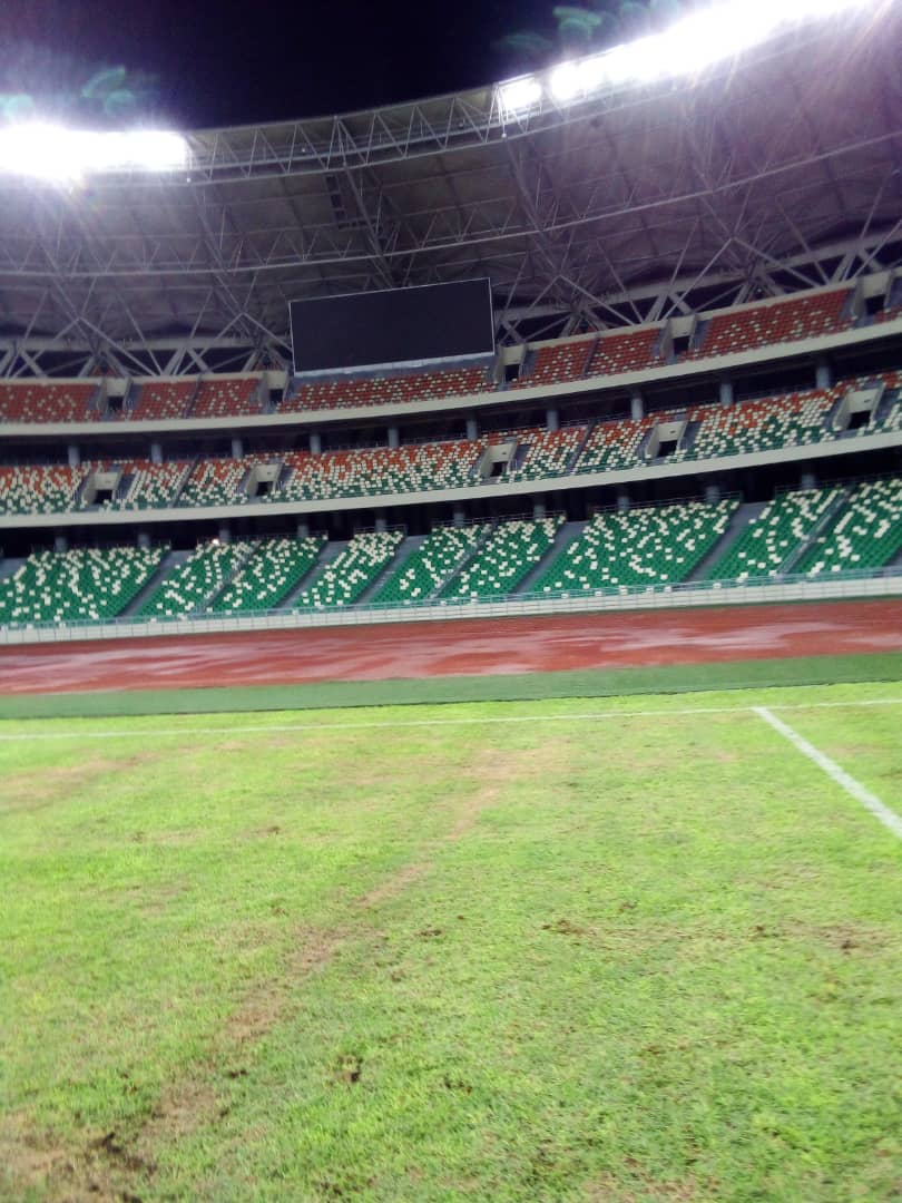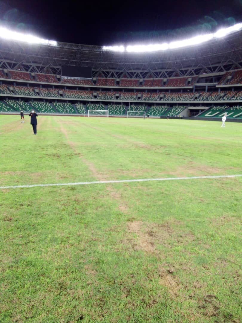 La pelouse du stade Alassane Ouattara d’Ebimpé est en friche : le terrain est sec et bosselé avec un gazon inexistant par endroit. Et pourtant, c’est bien sur cette pelouse que les Eléphants de Côte d’Ivoire affrontent les Lions Indomptables ce lundi, dans le cadre de la deuxième journée des éliminatoires du Mondial 2022.