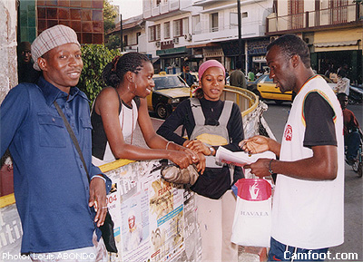 Cette mondialisation des stars du football est due à l’impact qu’ont les joueurs sur leurs supporteurs et les générations montantes du football. A titre d’exemple plus jeune international Eric Djemba Djemba se surnommait Eric Cantona et Raymond Kalla avait pour pseudonyme Franco Barési, pour ne citer que ceux là… Mais cette côte de popularité de nos stars du ballon rond varie bien évidemment d’un pays à un autre. Après un sondage effectué auprès du public Sénégalais et une revue de la presse locale, Camfoot a pu établir le hit parade des Lions Indomptables les plus et les moins aimés au Sénégal, question de savoir comment ils sont perçus hors de territoire national. Le football étant considéré un peu partout dans le monde comme le sport roi, ses stars sont toujours adulées et parfois traitées comme des princes. Ainsi lors des apparitions publiques des OKOCHA , DIOUF, ETO’O ZIDANE, etc, de Lagos à Dakar en passant par Douala et Paris, où dans n’importe quelle ville du monde, les fanatiques du football se sont toujours montrés très excités et prêts à tout pour un autographe ou une photo. Ceux-ci créent parfois des embouteillages, des bousculades des bagarres juste pour le plaisir de toucher leurs idoles. En guise d’anecdote, une des personnes sondée,(ASSANE GUEYE chauffeur de Taxi à Dakar) apparemment très fan des Lions nous a confié ceci: » vous savez, lors de la CAN 92 ici à Dakar, j’avais eu l’occasion de serrer la main de François Omam Biyick que j’aimais beaucoup. Après, j’avais tout fait pour ne plus tendre la main à quelqu’un d’autre. De retour chez moi, l’eau avec laquelle j’avais lavé mes mains, je l’avais mis dans une bouteille et j’avais noté son nom dessus avec un marker. Jusqu’à présent je la garde jalousement« . Juste pour vous dire jusqu’à quel point les fans peuvent aller…Photo sondageEn rendant à César ce qui appartient à César, CAMFOOT s’est ainsi amusé à mener une enquête auprès du public Sénégalais sur ce qu’il pense des Lions Indomptables de ces quatre dernières années ( 2000 à 2004 ). A l’issue de ce sondage qui a été effectué pour des raisons purement et simplement anodines, nous avons pu établir le hit parade et la cote de popularité de nos chers Lions sans prétention aucune, mais juste comme un clin d’oeil venu du sénégal. Si les Français par exemple ont le droit de savoir que ZIDANE et l’ABBE PIERRE sont les deux personnalités françaises les plus adulées (d’après un sondage dont ils sont en tête de liste), nos lecteurs aimeraient aussi savoir de temps en temps comment sont appréciées leurs stars hors de nos frontières… Le CAMEROUN étant à l’Afrique(footballistiquement parlant) ce que les ETATS UNIS sont (industriellement parlant) au monde, la vie, les faits et gestes des joueurs très célèbres de l’équipe Africaine du siècle sont analysés, appréciés et commentés par le public de diverse façon.Photo prise lors du Sondage Les méthodes et règles que nous avons établies pour effectuer le sondage ont été les suivants: – les personnes sondées ont été triées au hasard, proviennent de toutes les couches sociales, sans égards au sexe.
