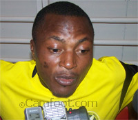 «Lorsque l’attaque ne marque pas, la défense va forcement subir le match, c’est ce qui est arrivé cet après-midi, je crois que nous n’avons pas cru en nous au début du match et pourtant l’adversaire était à notre portée, sur le penalty, j’esquive d’ailleurs le joueur, mais l’arbitre pointe le point de penalty, c’est malheureux pour l’arbitrage africain, qu’à cela ne tienne nous avons l’occasion au match retour de rectifier le tir et je crois que cette équipe ne peut pas nous éliminer, nous allons tout donner à Douala.»