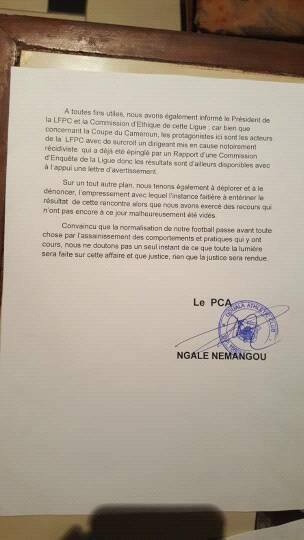 Face à ce comportement qualifié, de « particulièrement grave pour le football camerounais », le Comité de normalisation de la Fédération camerounaise de football (Fecafoot) a été saisi pour l’ouverture d’une enquête qui conduira, espèrent les dirigeants de Dac 2000, à des « sanctions appropriées et exemplaires », conformément à la loi. « A toutes fin utiles, nous avons également informé la Ligue du football professionnel du Cameroun (Lfpc) et la Commission d’éligibilité de cette Ligue, car bien que concernant la Coupe du Cameroun, les protagonistes sont des acteurs de la Lfpc avec de surcroit, un dirigeant mise en cause, notamment, récidiviste qui a déjà été épinglé par un rapport d’une commission d’enquêtes de la Ligue », souligne le Pca de Dac 2000.