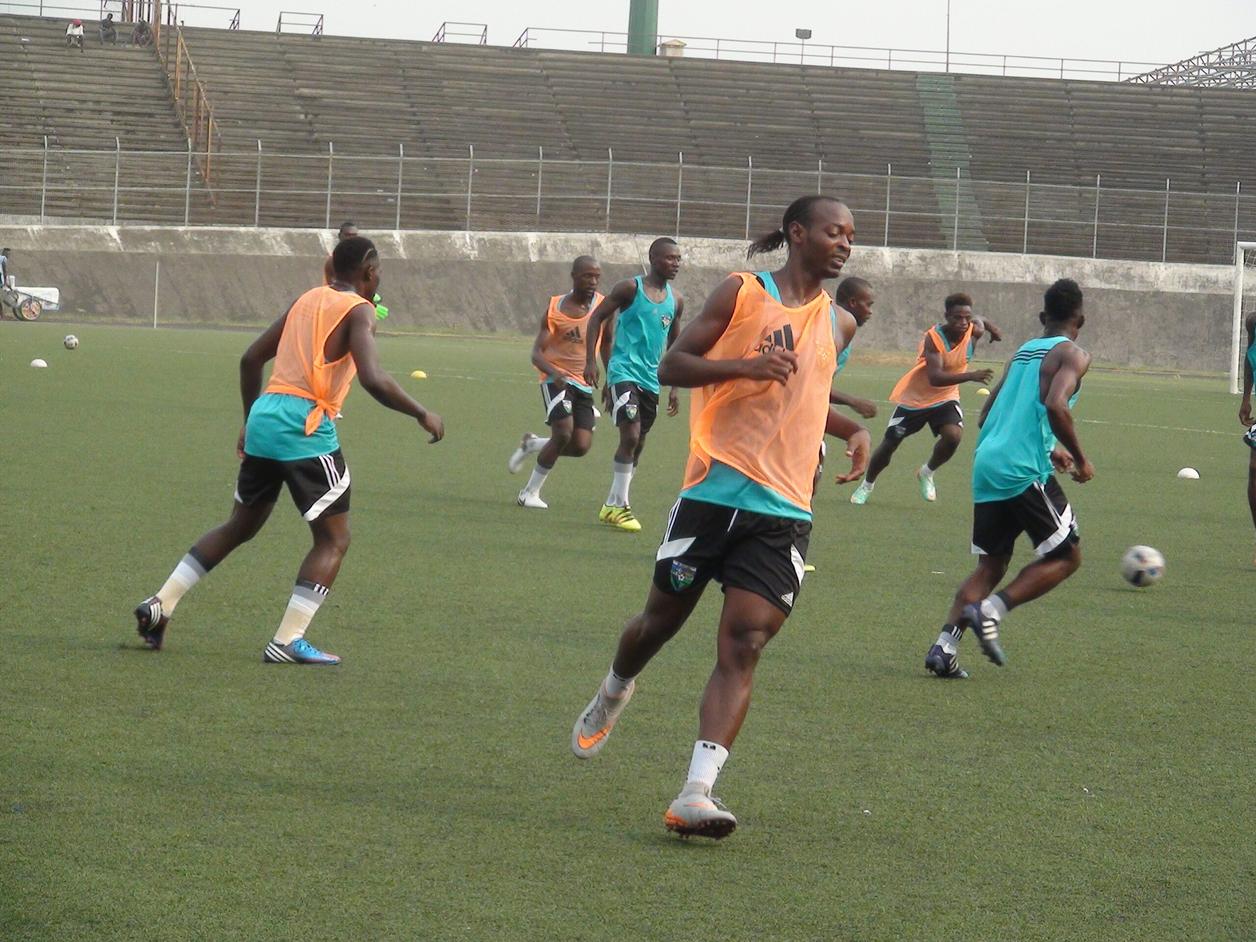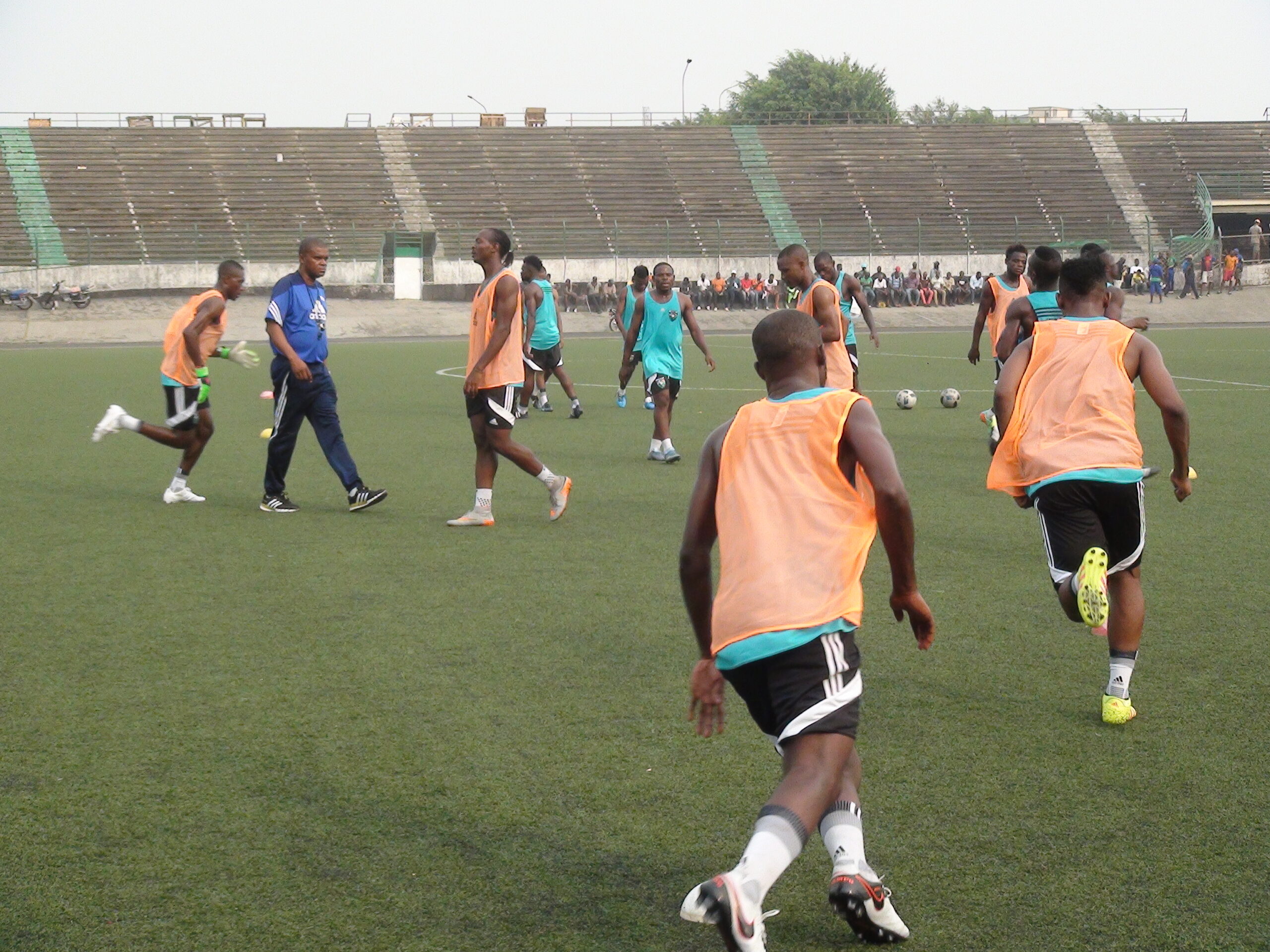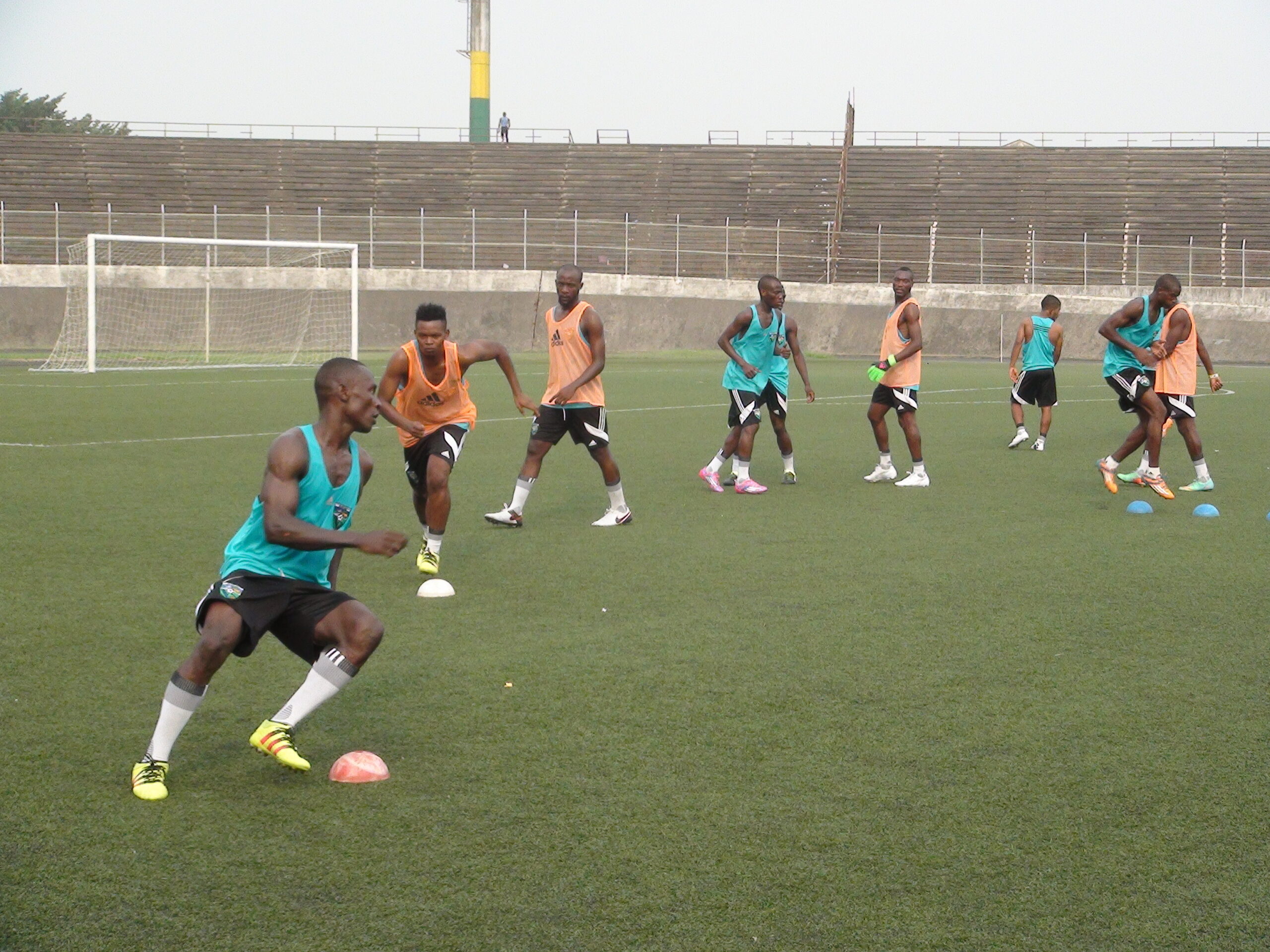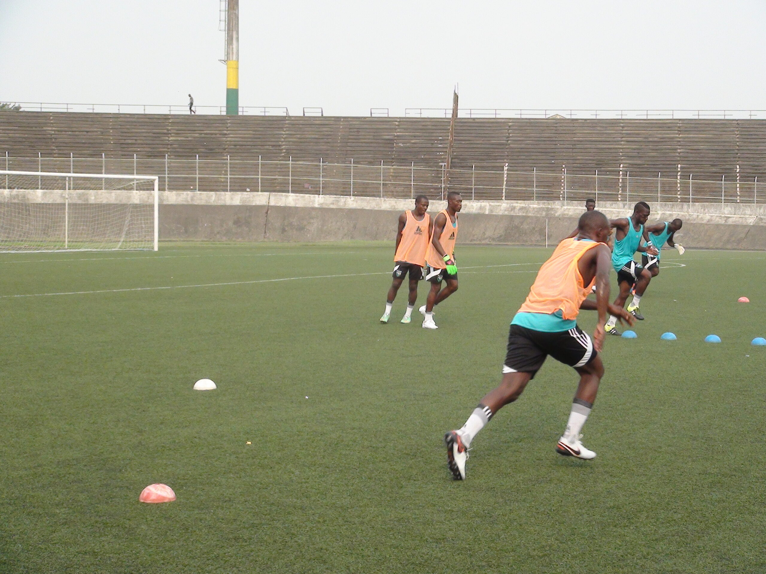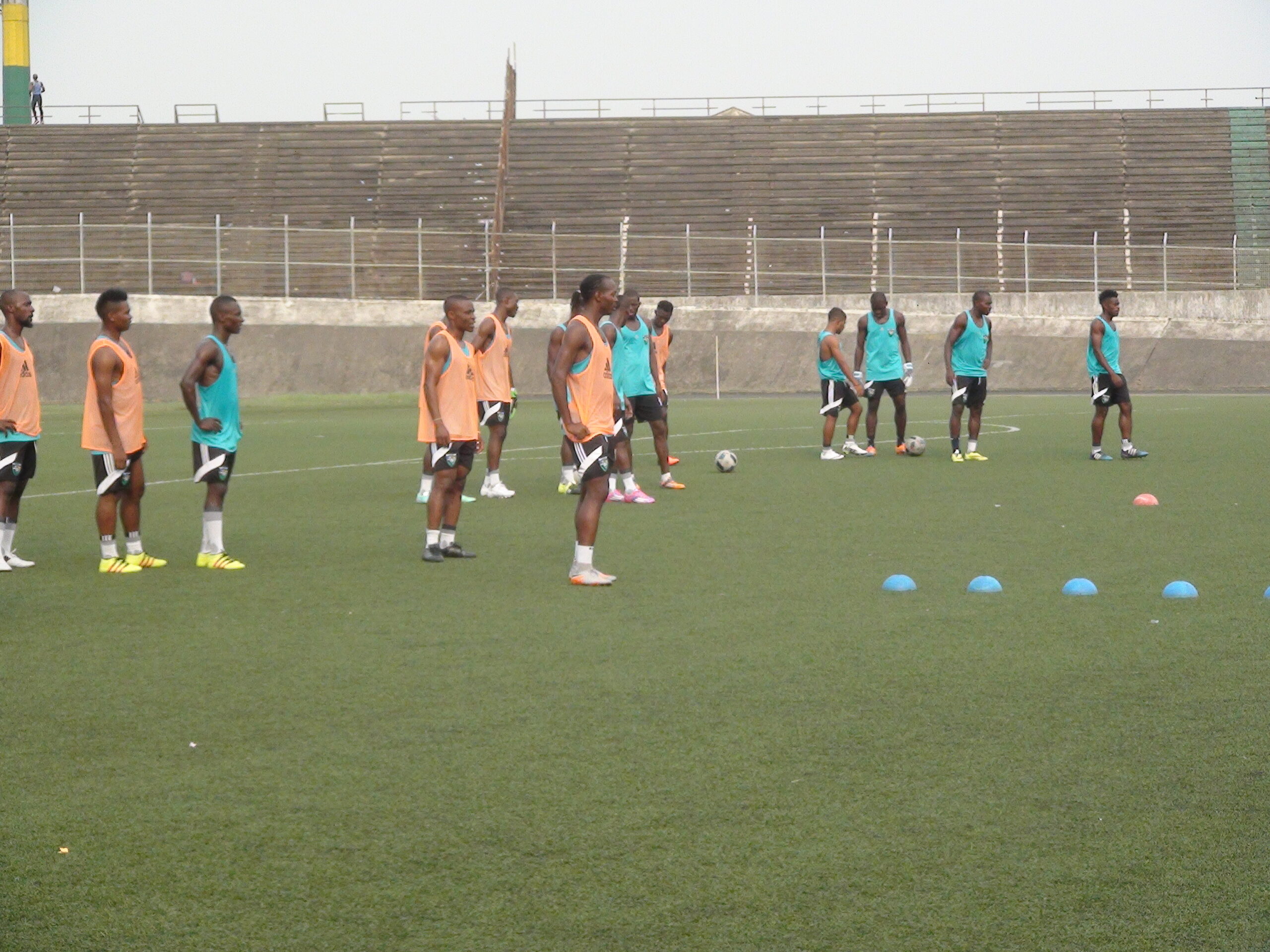 A leur arrivée ce samedi à 15h41 minute au stade de la réunification, joueurs et encadreurs n’ont eu que le temps de descendre du bus et de fouler la pelouse. Une courte prière et l’entraîneur Antonio Pancho MILAM NDONG a débuté la séance par les étirements.
