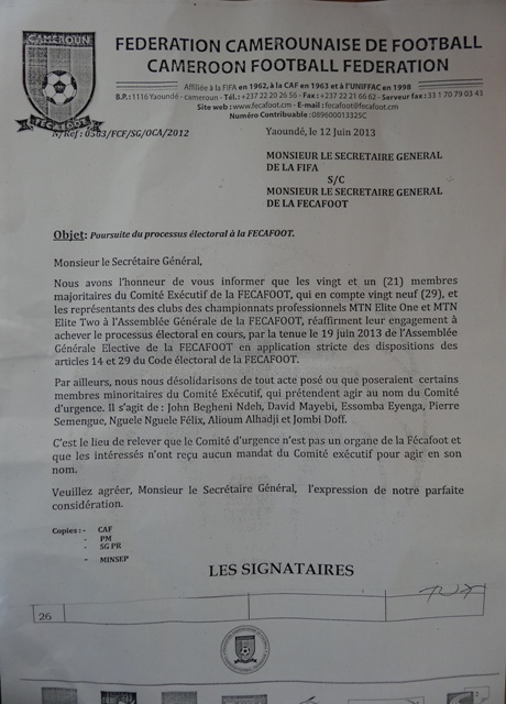 La rédaction de Camfoot a pu rentrer en possession de cette lettre que nous vous faisons découvrir.