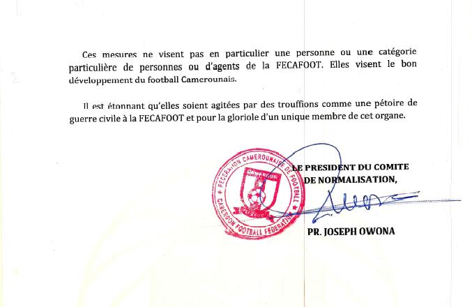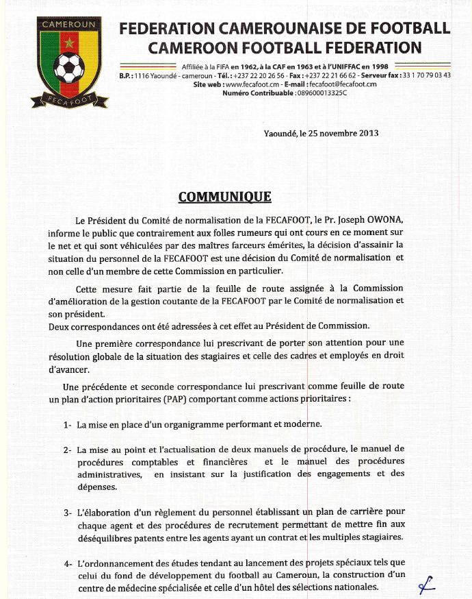 Le Pr Joseph Owona, président du comité de normalisation de la Fécafoot, n’est pas d’accord sur ce qui se raconte sur la gestion du personnel de la fédération. Il le fait savoir dans un communiqué adressé ce jour aux médias.