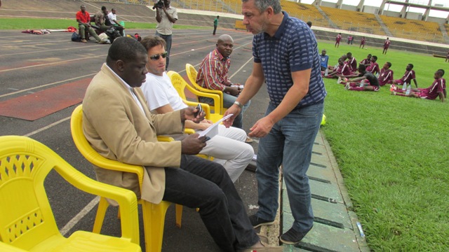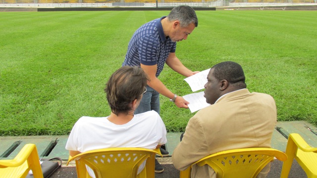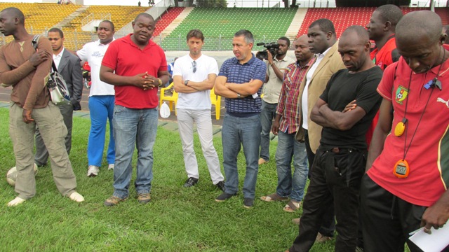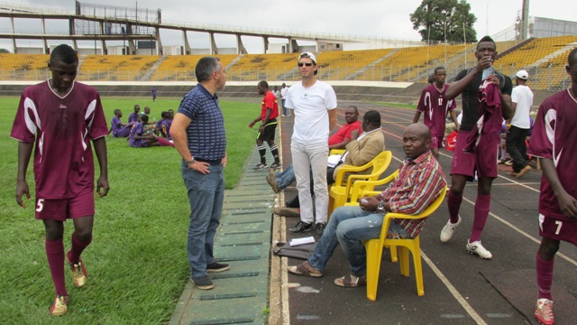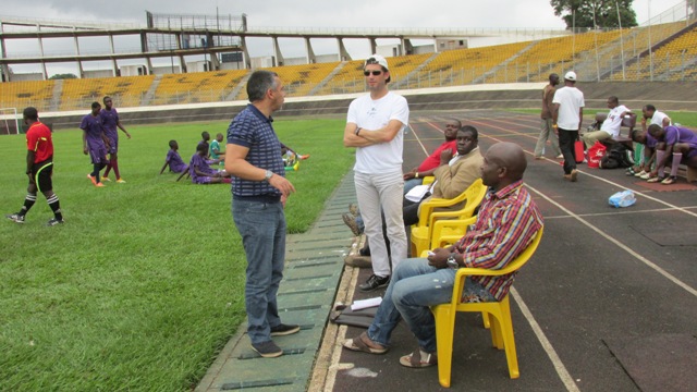 Jean-Philippe Durand et Fabrice Picot, venus de Marseille, accompagnés de Maxime Nana, l’agent de joueur Fifa, travaillent depuis deux jours à Yaoundé avec des jeunes des centres de formation « sérieux » du Cameroun, regroupés autour du G8 (une association composée huit centres de formation), dont Richard Towa est le directeur technique.