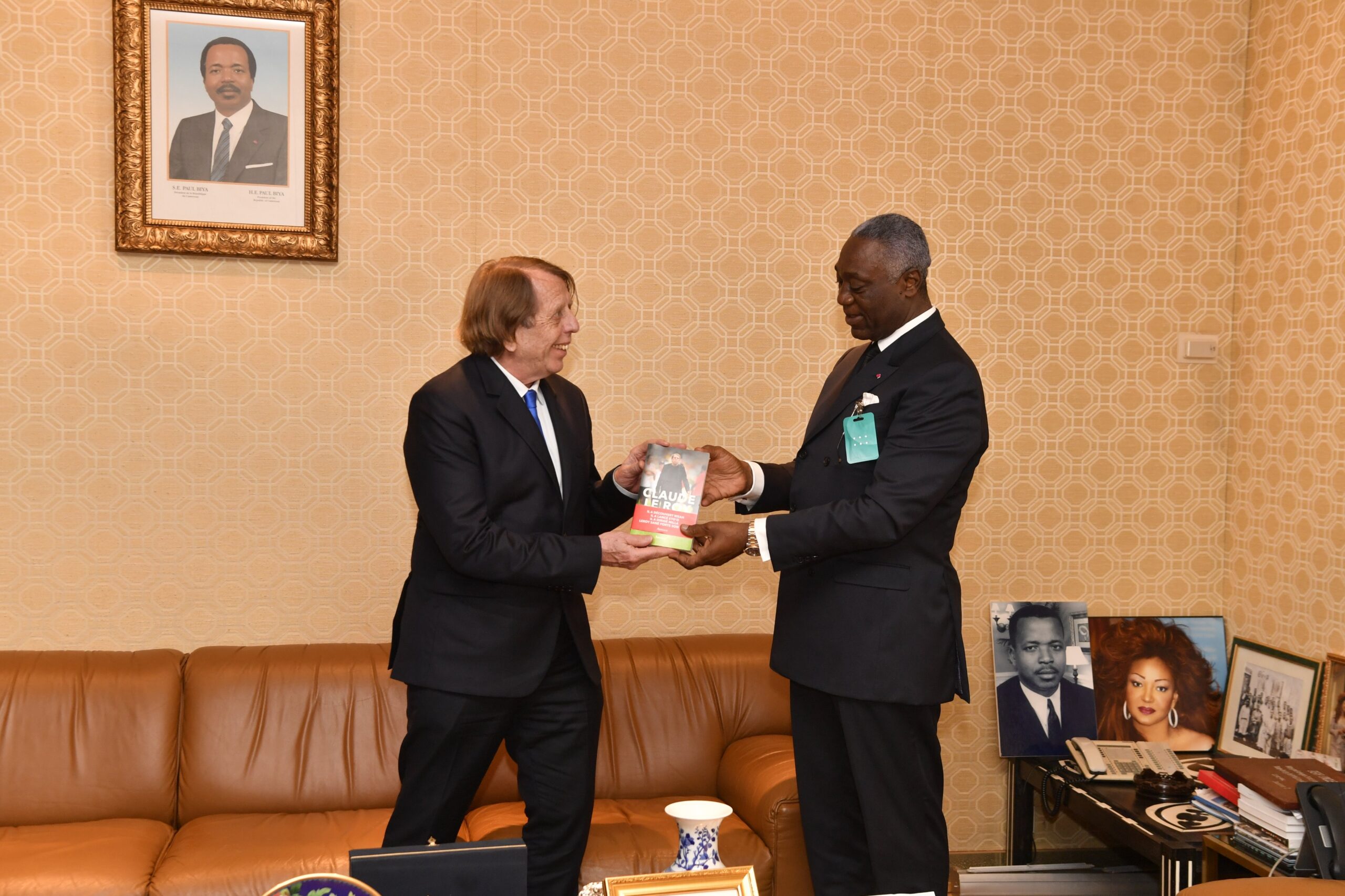 Claude Le Roy a remis à son hôte, à l’attention de S.E. Paul Biya, un exemplaire dédicacé de son ouvrage intitulé « Claude Le Roy, un sorcier Blond », publié aux éditions Arthand, en mai 2021.