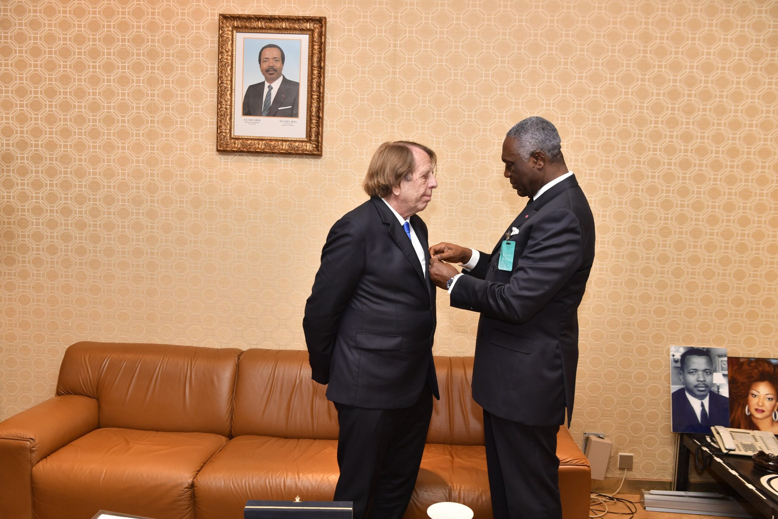 À l’issue de l’entretien, Claude Le Roy a été fait chevalier du mérite camerounais.