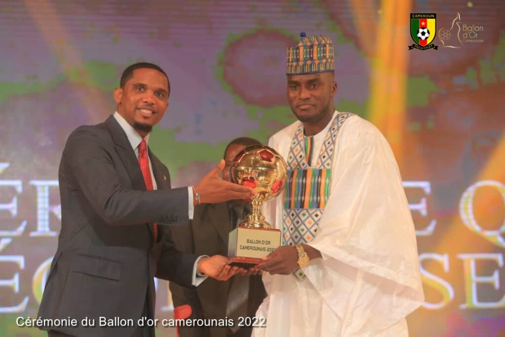 Le jour de gloire est arrivé pour Marou Souaibou ce samedi 29 octobre 2022. L’attaquant de Coton Sport de Garoua, auteur d’une saison bien remplie, s’est en effet vu remettre des mains du président de la Fécafoot Samuel Eto’o, le Ballon d’or camerounais, qui récompense le meilleur joueur de la saison 2021-2022.