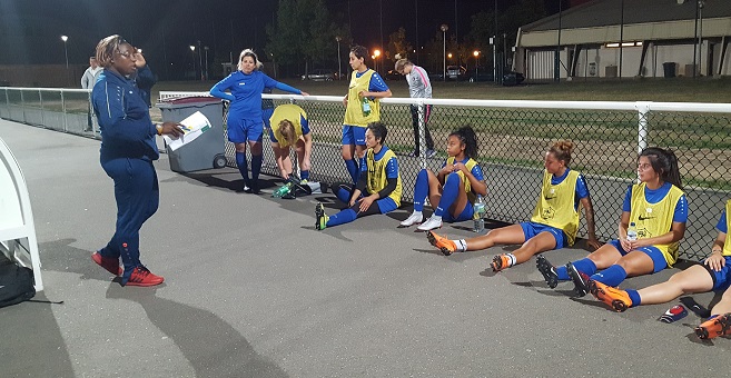 Surtout ne pas se fier à la douceur de sa voix et son sourire angélique au moment où vous la rencontrez. Une fois sur le terrain, Dorette Elangue Etemé se métamorphose, donne de la voix, interrompt la séance, recadre ses joueuses, donne des instructions à son adjoint. L’ancienne Lionne indomptable, désormais à entraîneure à Poissy (Régional 2) s’amuse elle-même de ce paradoxe : « c’est le hemlé que j’essaie de transmettre, nous confie-t-elle. Sur le terrain, on doit donner tout et s’appliquer dans chaque geste. Comme j’ai un groupe de jeunes filles, je dois faire attention à ce qu’elles ne s’écartent pas trop de nos objectifs. »