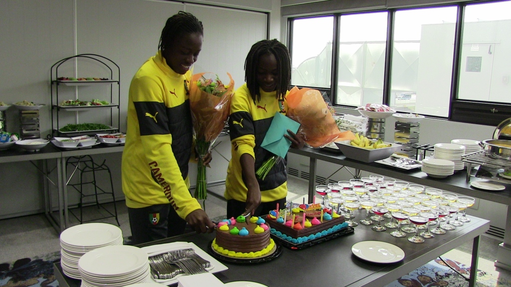 Les à-côtés de la tanière camerounaise sont particulièrement marqués au Canada par les anniversaires de quelques Lionnes, et ce quasiment en marge de chacune de leurs sorties. Après Gaëlle Enganamouit (9 juin) et Grâce Ngock Yango (12 juin), ce sont deux autres qui ont été célébrées par leurs coéquipières jeudi. La gardienne de but Annette Ngo Ndom (31 ans) et l’attaquante Henriette Akaba Edoa (24 ans) ont toutes vu le jour le 18 juin. Et au sortir de la séance d’entrainement d’hier elles ont concomitamment soufflé sur leurs bougies à l’hôtel Delta Edmonton South où elles sont logées.