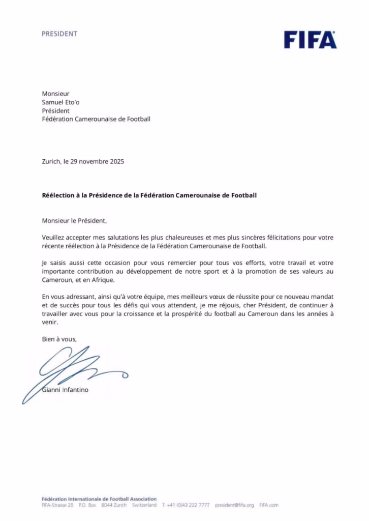Election Fécafoot : Infantino félicite Samuel Eto’o