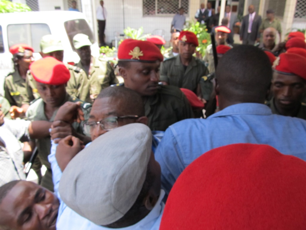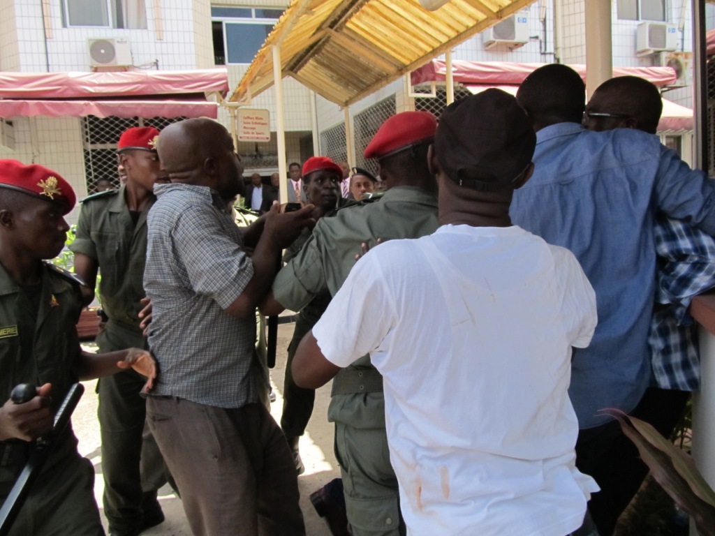 Juste le signal qu’attendaient les gendarmes qui ne se sont pas fait prier pour se lancer dans la partie. Mayebi, Massing, Mettomo ont été brutalisé par les éléments des forces de défense.