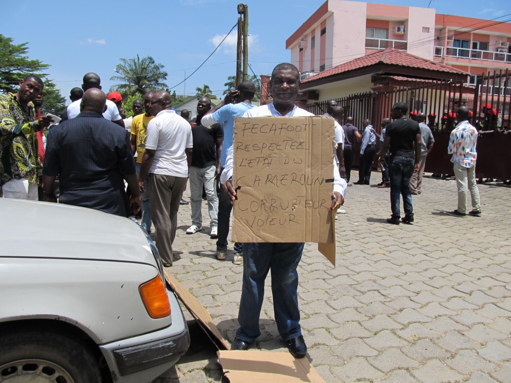 Hervé K, le présentateur vedette du journal de 6h30 sur la radio équinoxe a été pris pour cible par quelques manifestants anti-Fecafoot posté à l’extérieur. Il sera défendu par ses confrères qui ont clamé haut et fort ne faire que leur travail sans aucune prise de position dans ce « conflit ». Plus de peur que de mal, ce reporter qui ne s’est pas laissé intimider a repris ses esprits et a poursuivi son travail.