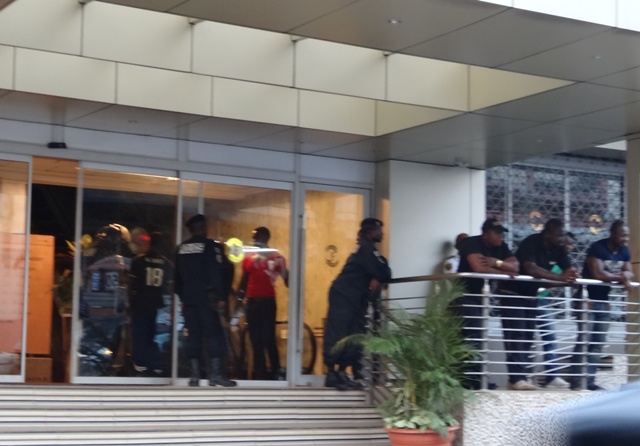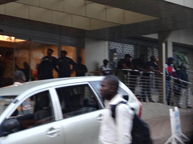 Des journalistes qui ont accès à la salle ont été triés sur le volet. De quoi susciter l’ire de ceux qui ont été recalés avant le perron des escaliers de l’hôtel. « On ne filme pas monsieur », insiste un monsieur en civil placé au bord de la route. « Pas de photos, dis-je, il y a des consignes pour ça et n’insistez pas », menace cet individu, visiblement agent des renseignements.