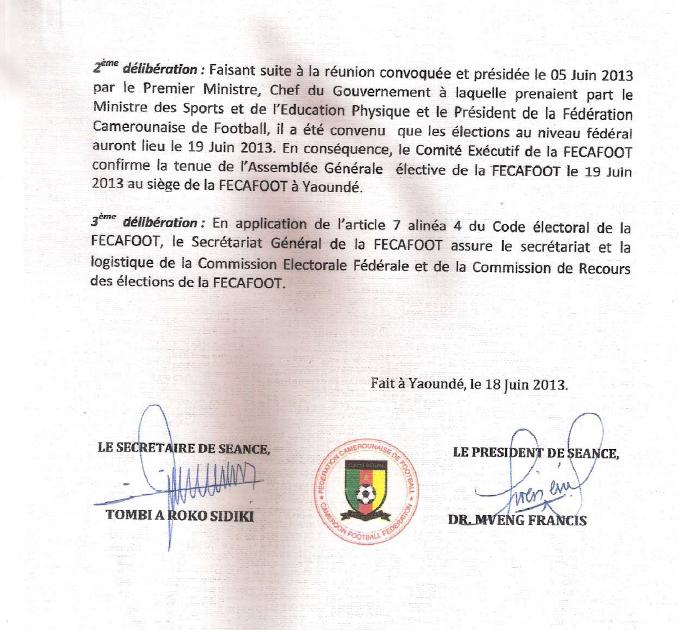 C’est une des principales résolutions du comité exécutif de la fédération camerounaise de football qui s’est tenu ce mardi 18 Juin 2013 (10H55) dans la salle de conférences de l’immeuble siège de la Fécafoot à Yaoundé.