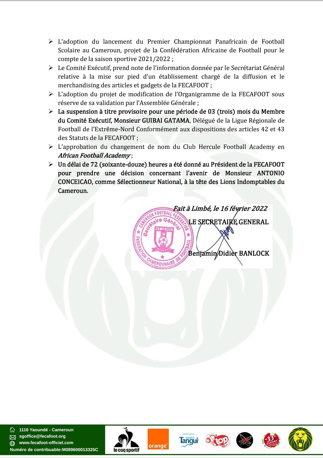 La session du Comité Exécutif qui s’est tenue ce mercredi a donc été l’occasion de régler ses comptes au journaliste à qui l’on reproche également, le fait d’avoir publiquement soutenu Vincent Aboubakar après sa bourde, au terme de l’élimination du Cameroun en demi-finale de la CAN 2021, lorsque celui-ci accusait ses coéquipiers d’avoir fait preuve d’égoïsme.
