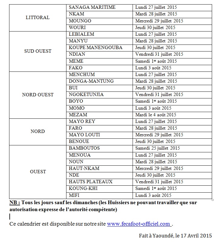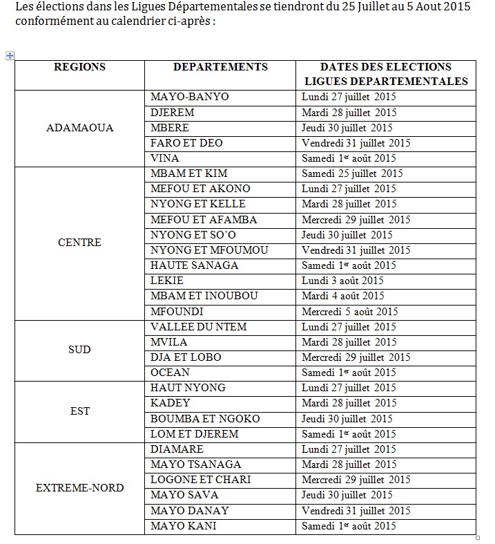 Lors de la réunion du Comité de Normalisation tenue le 16 Avril 2015, trois résolutions ont été prises et le chronogramme des élections arrêté. Si la date du 25 Septembre 2015 est prévue pour les élections fédérales aux postes de Président et de membres du Comité Exécutif de la FECAFOOT, le 25 Juillet 2015 marque le début des élections à la base. Le chronogramme complet …
