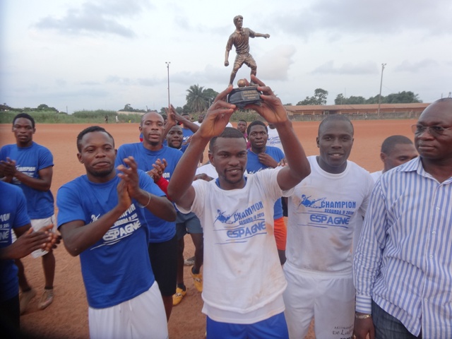 C’est une standing ovation du public qui s’est donné rendez-vous ce jeudi après-midi au stade militaire a accueilli la sortie de l’aire de jeu de Franck Omgba opono. Le milieu de terrain d’Oviedo, champion de la Secunda B, se faisait remplacer par un de ses amis du quartier Ngoa-Ekellé à la 75ème minute de jeu, à l’occasion d’un match de gala qu’il a organisé. Il a par la suite reçu un trophée des mains de Simon Assoumou, conseiller d’Aimé Léon Zang, le président d’ Apejes de Mfou.