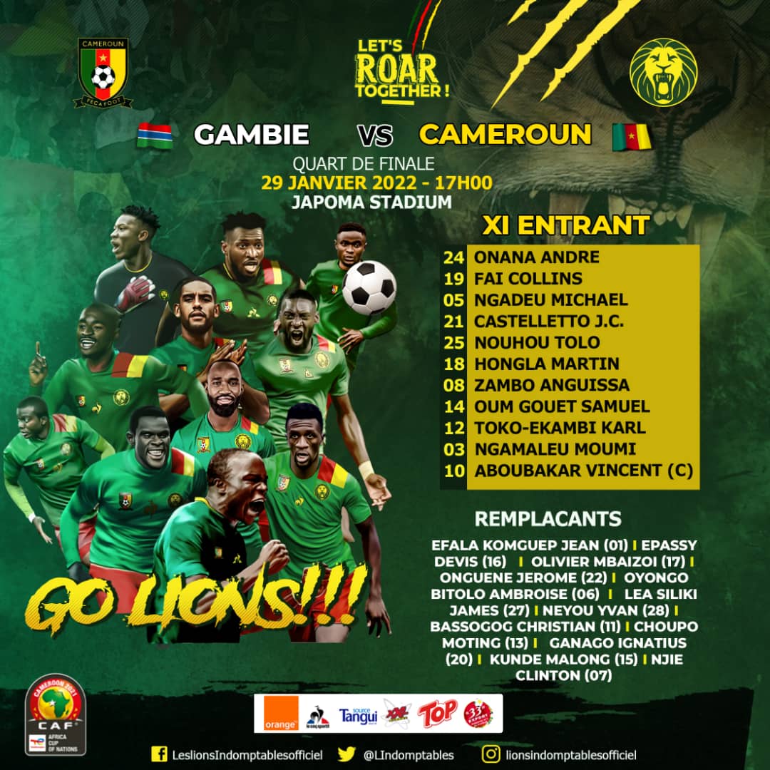Antonio Conceiçao a choisi de donner de la confiance à la paire Ngadeu – Castelletto dans l’axe de la défense des Lions Indomptables du Cameroun. Bien plus que cela, il va aligner toute La Défense du dernier match contre les Comores. Au milieu de terrain, Oum Gouet va débuter avec les deux habituels que sont Zambo Anguissa et Martin Hongla. Le trio offensif Ngamaleu, Aboubakar, et Toko Ekambi répondent présents à leur poste.