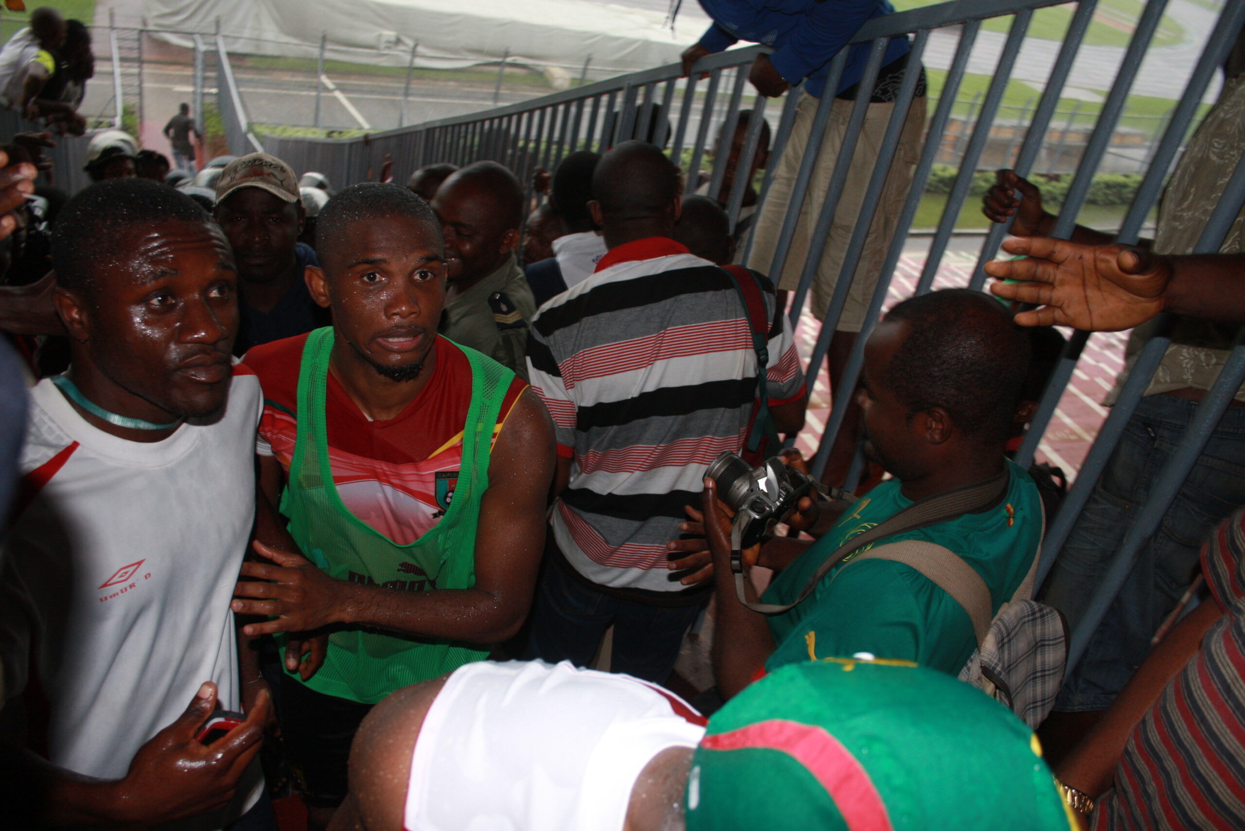 De manière générale, les gradins étaient assez bien garnis, avec des supporters et des fans clubs scandant le nom de leur idole, Samuel Eto’o Fils. Le «Pitchichi» reste et demeure le chouchou des Camerounais. Mais, le capitaine des Lions indomptables a été obligé de quitter précipitamment l’aire de jeu, en même temps que ses coéquipiers. L’équipe nationale a prématurement mis fin à la séance d’entraînement, en raison d’une adverse violente qui a réduit considérablement la visibilité.