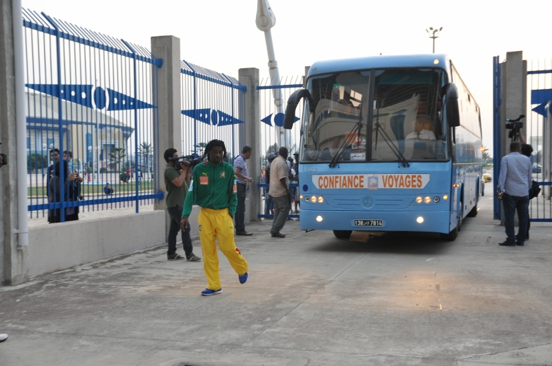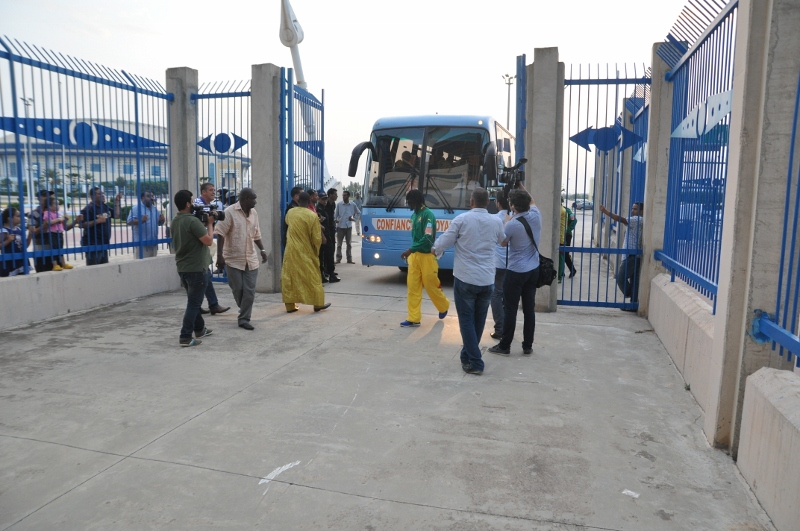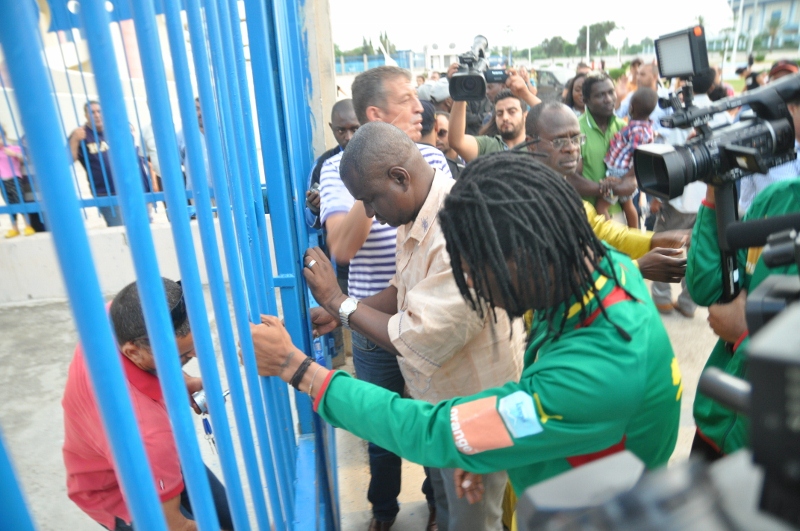 Impossible de retrouver les clés du Stade de Radès ce samedi après midi pour la reconnaissance du stade par les Lions indomptables du Cameroun. Malgré les protestations énergiques de la délégation, le groupe a eu à attendre plusieurs minutes. L’employé responsable des clés ne retrouvait plus la bonne clé. Il a fallu l’intervention energique de Oumar Haiini pour que l’on ouvre les portes du stade pour l’entrée du bus des Lions Indomptables. En images…
