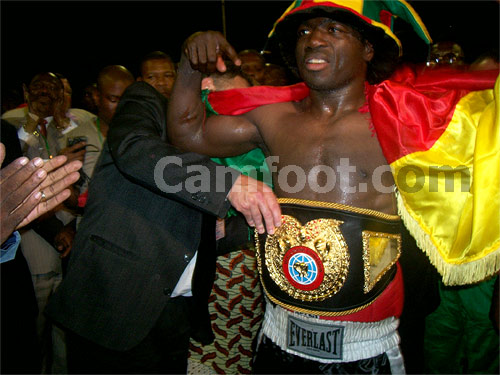 Le boxeur camerounais de 29 ans a remporté ce vendredi 14 décembre 2007, à Yaoundé, la couronne mondiale Wbf dans la catégorie de poids welters. C’était en battant aux points l’Uruguayen Ruben Francisco Silva Diaz. Un combat en 12 rounds intenses et au terme duquel les trois juges français, belge et sud-africain ont donné un verdict sans appel, 118-109, 118-109 et 118 à 110.