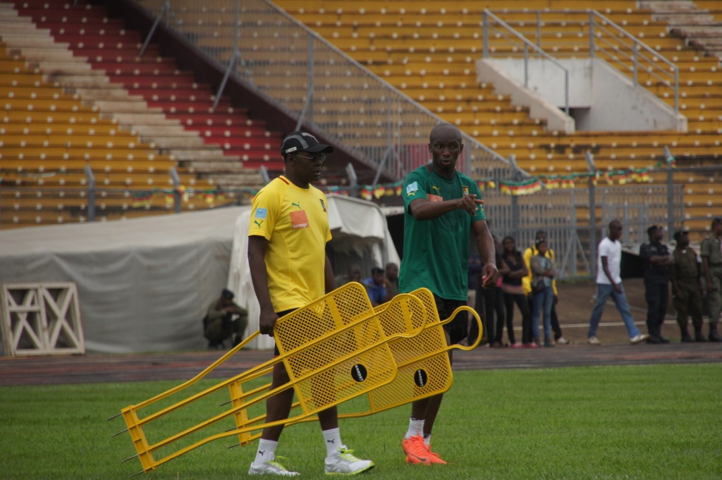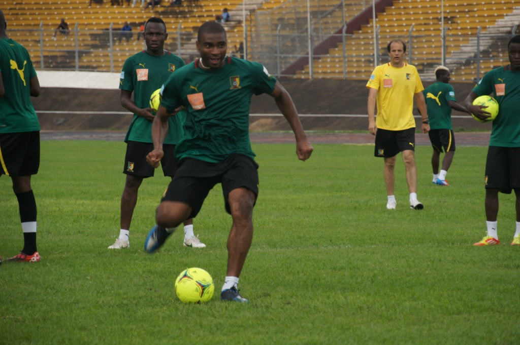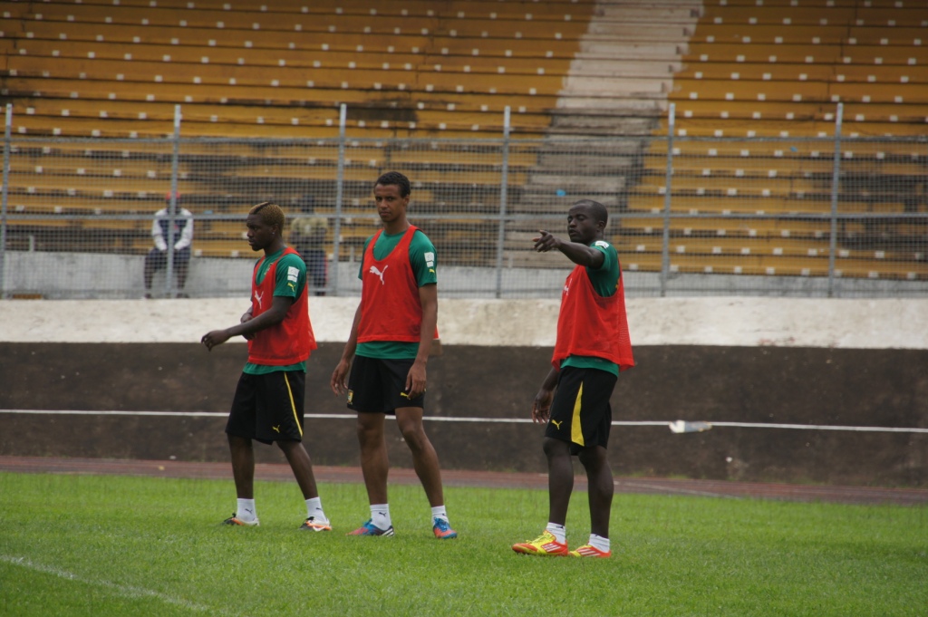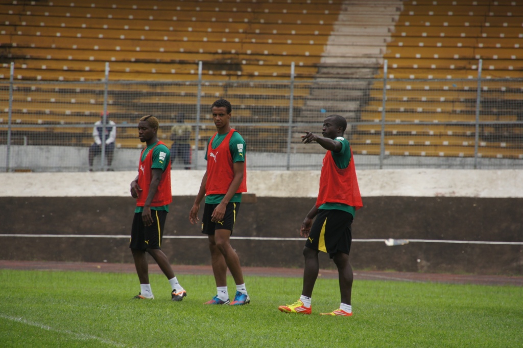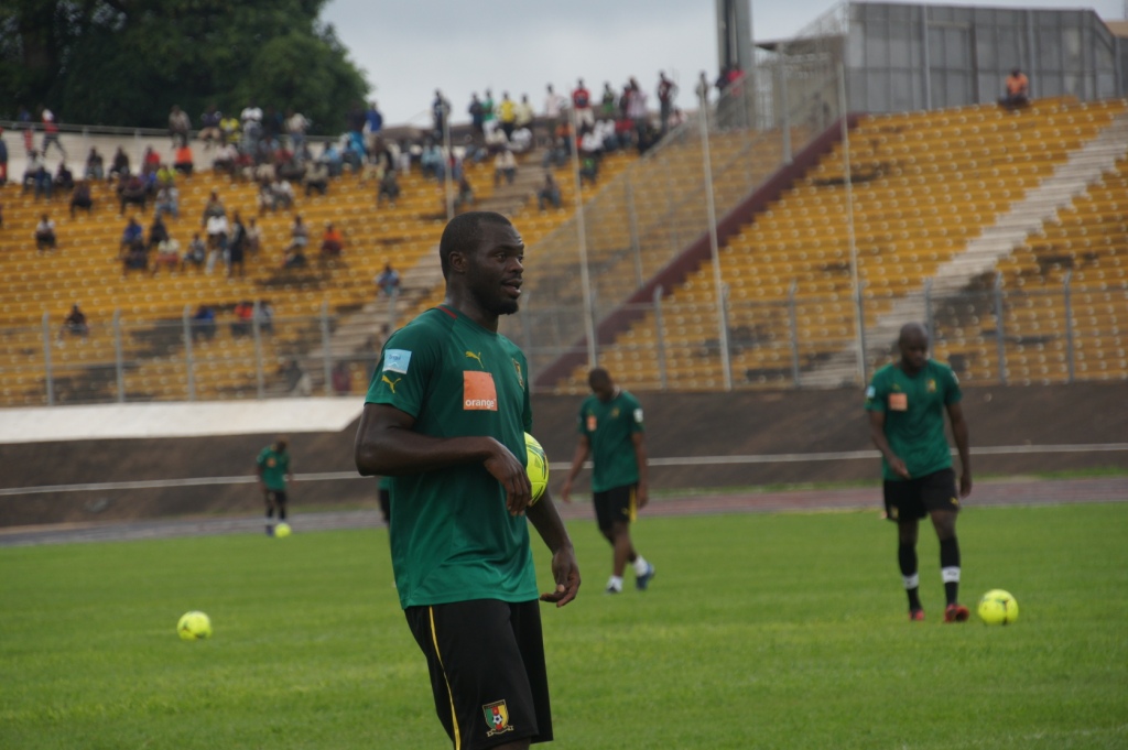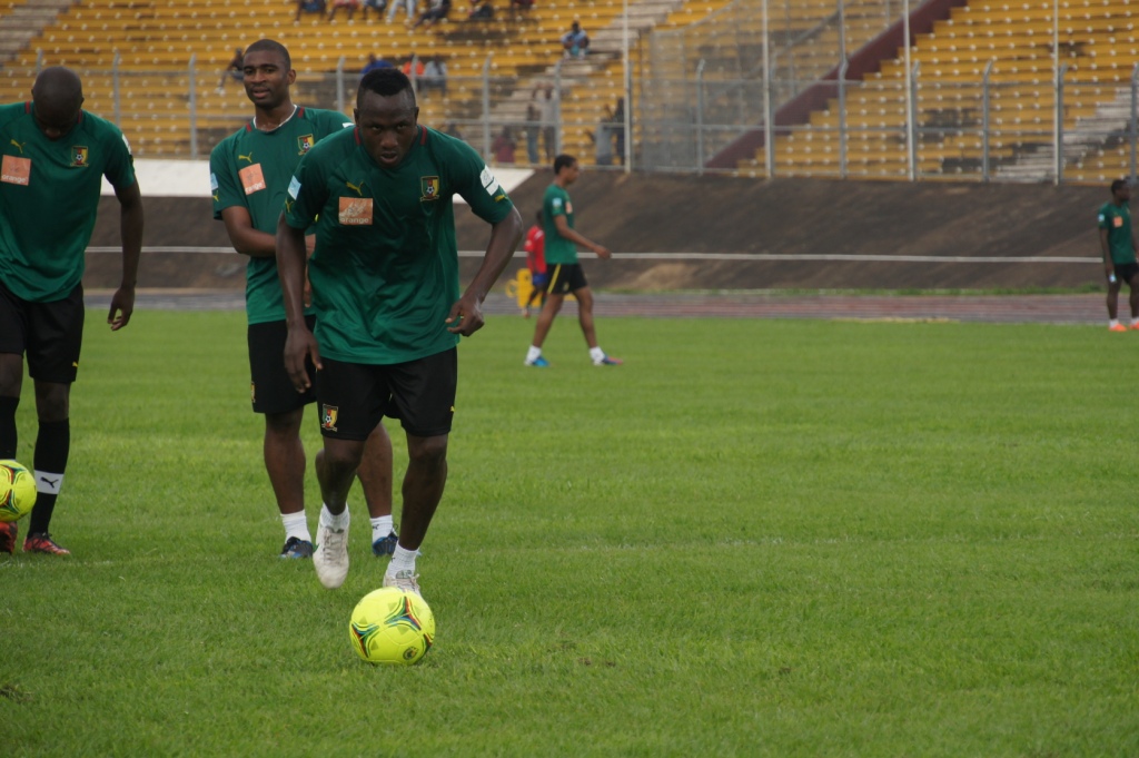 Moukandjo n’a pas achevé les entraînements avec le groupe. Après avoir trottiné en solitaire, il a pris place au côté du staff médical.