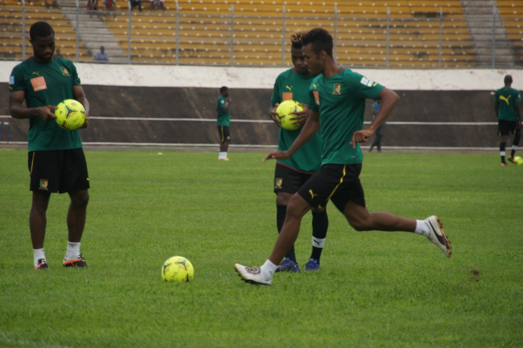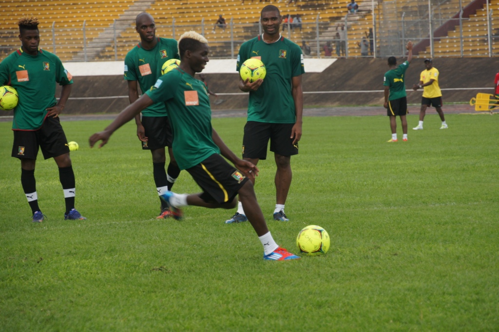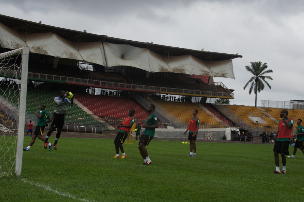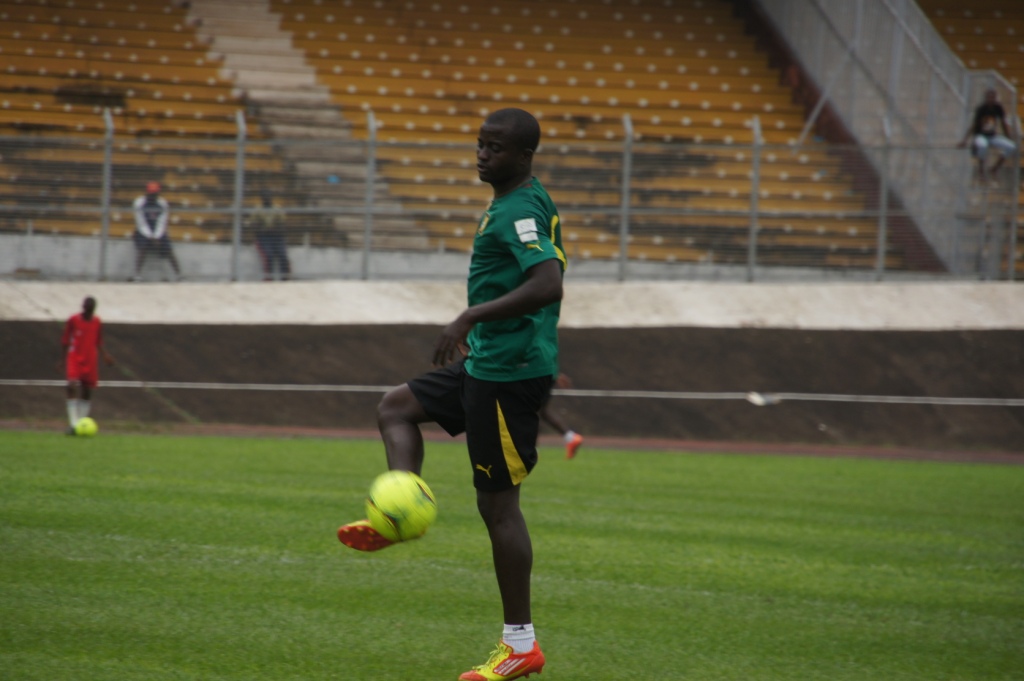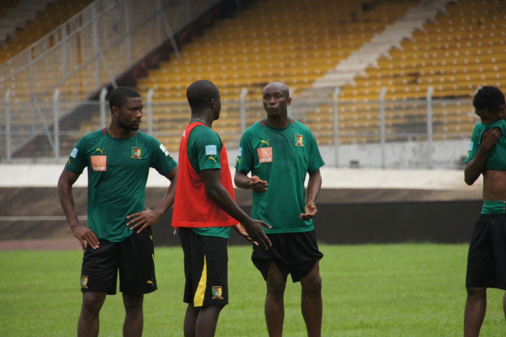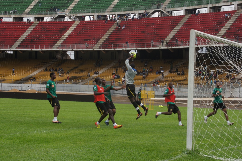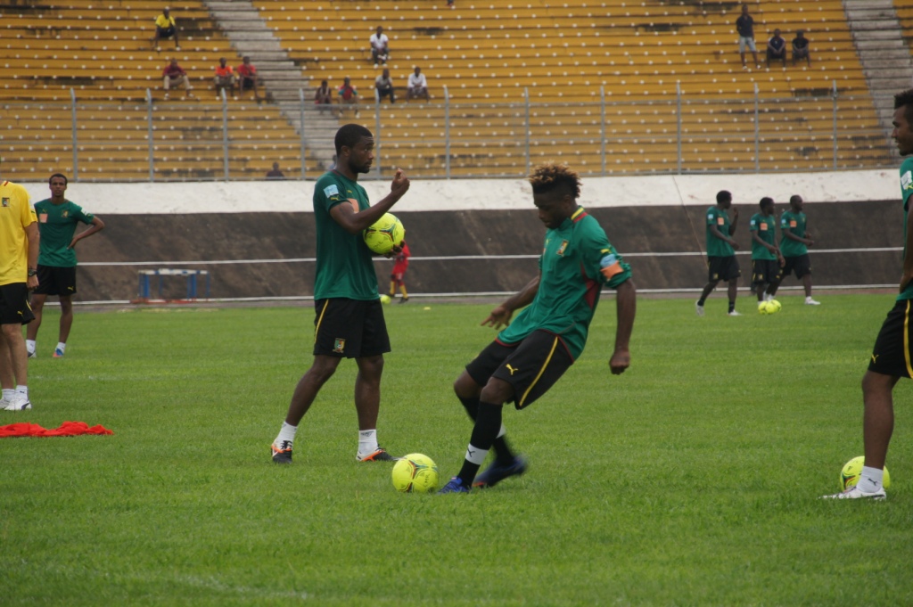 Moukandjo n’a pas achevé les entraînements avec le groupe. Après avoir trottiné en solitaire, il a pris place au côté du staff médical.